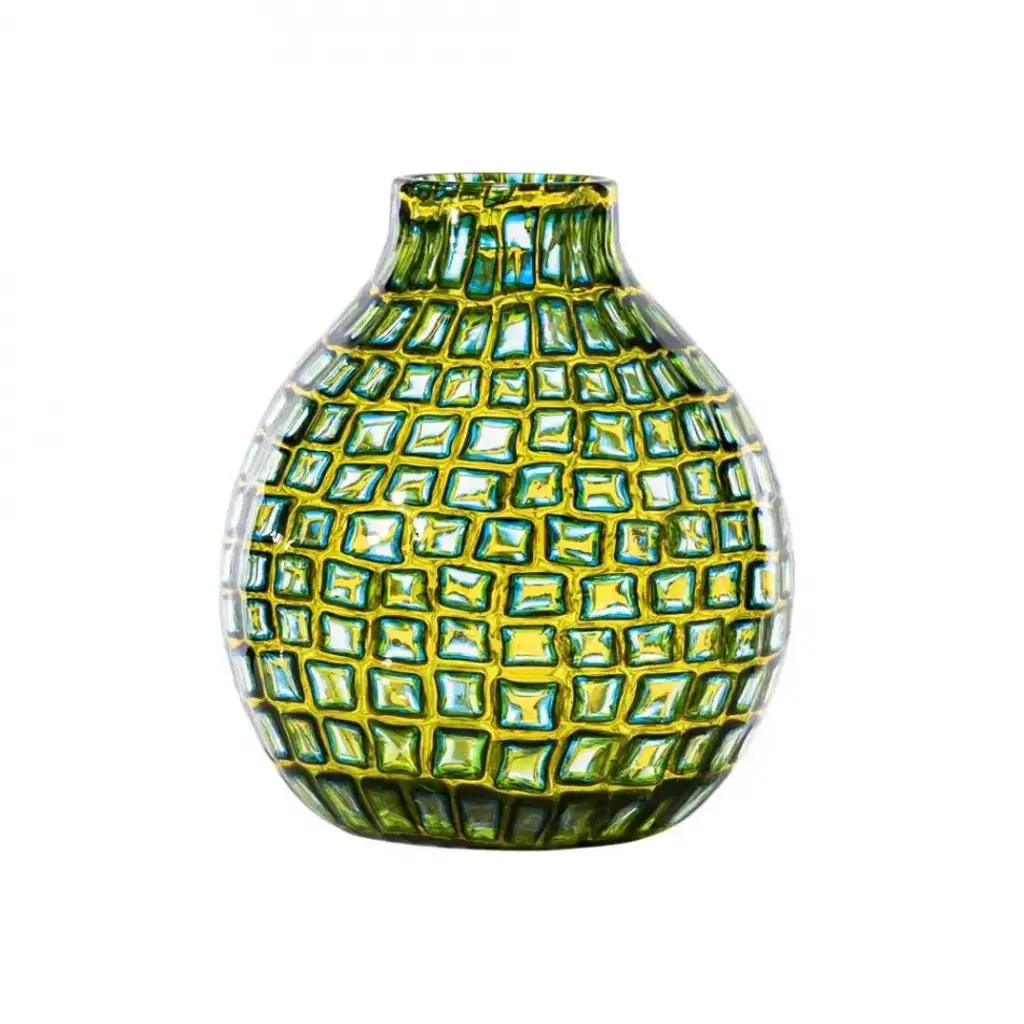 Murrine Romane By Carlo Scarpa Sapphire/canarian Yellow/crystal Vase
