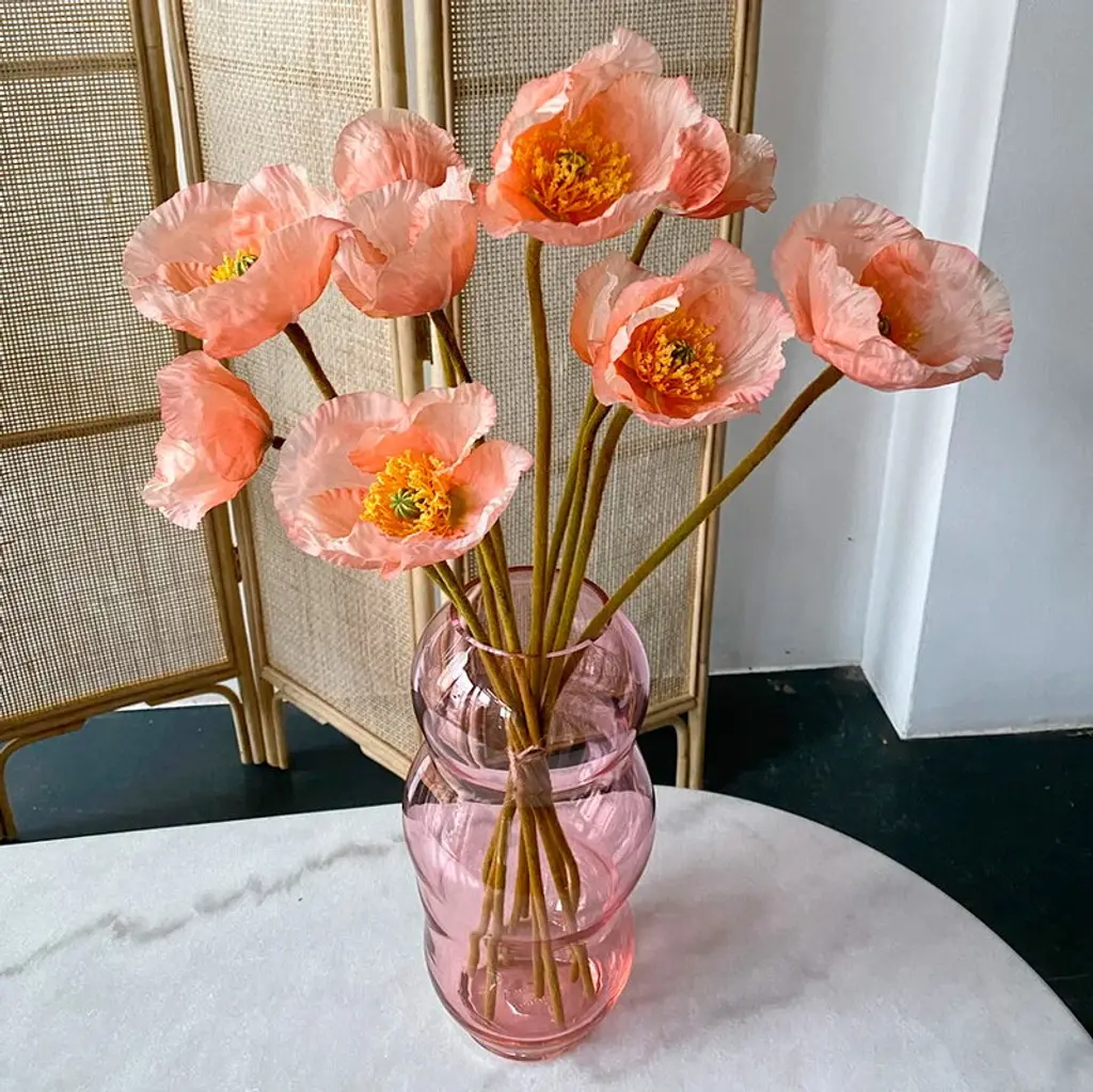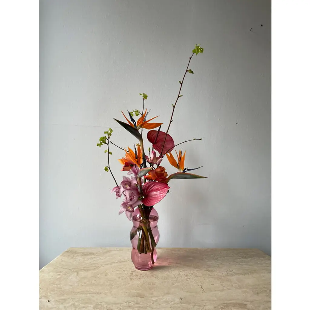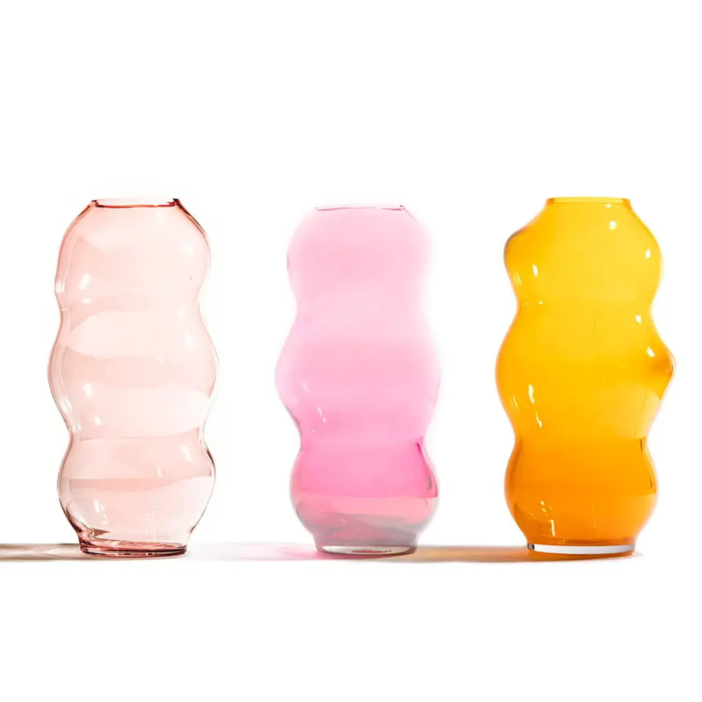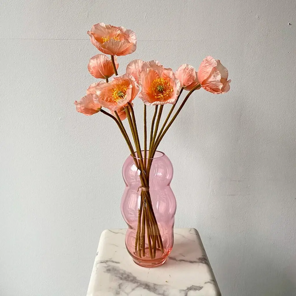 Fundamental Berlin's Muse vase has a rounded shape that makes the flowers inside it shine. The charming vase is made in collaboration between talented Bohemian glassblowers and the Berlin-based cult florist Marsano. The Muse vase looks beautiful as a single decorative object on its own, but also when combined with other Muses. You can also create a sensual composition by combining multiple vases of different sizes and colors with different flowers! The Muse vases are handblown. Due to the manufacturing process, there are differences in both glass thickness and color intensity, giving each vase a unique one-of-a-kind character.