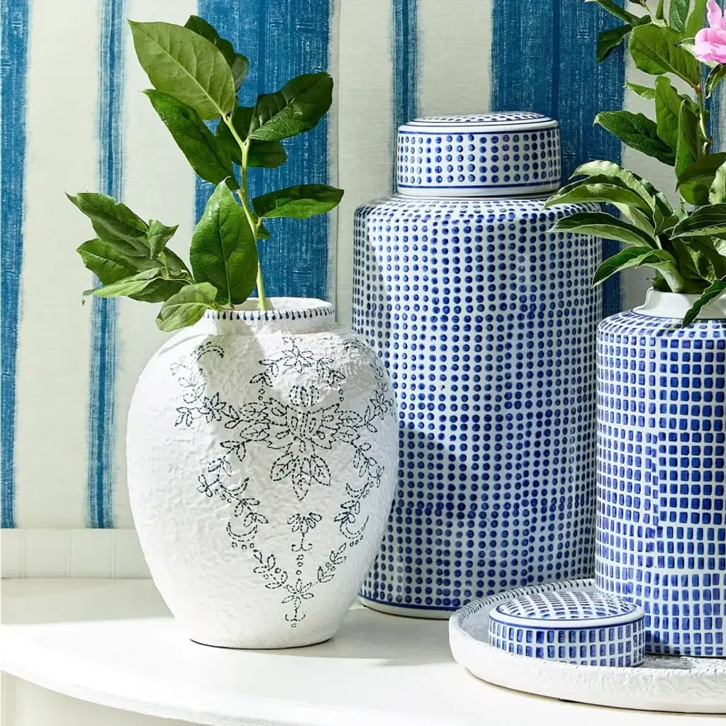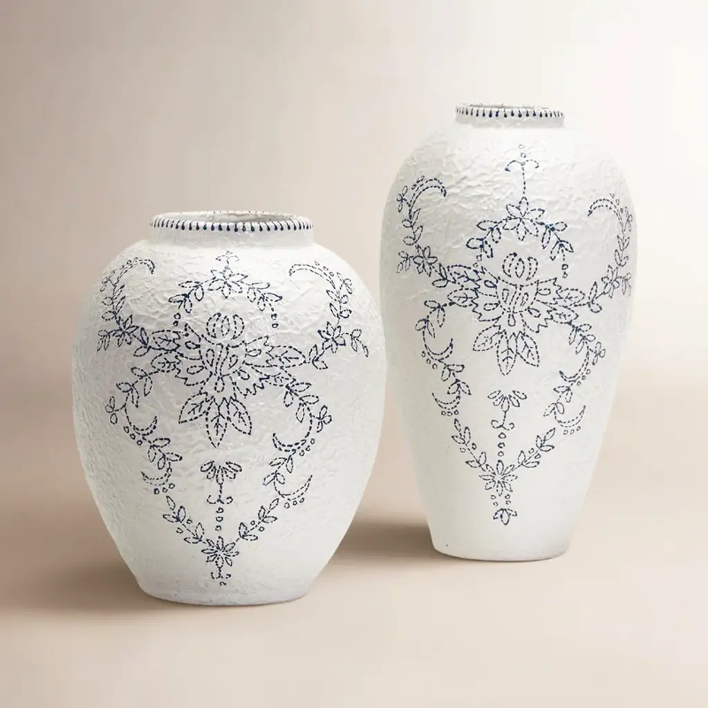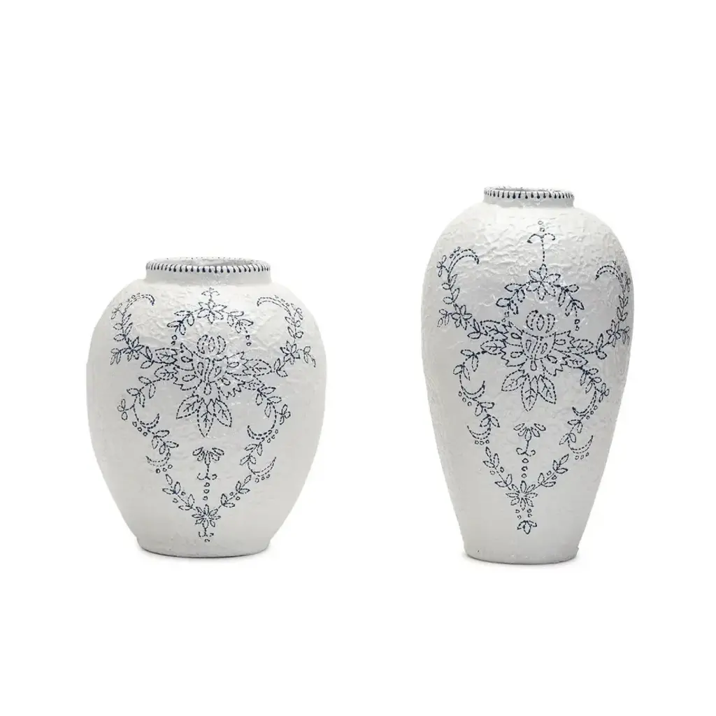 Mykonos Set Of 2 Blue And White Vases (Dry Flowers Only) Ecomix