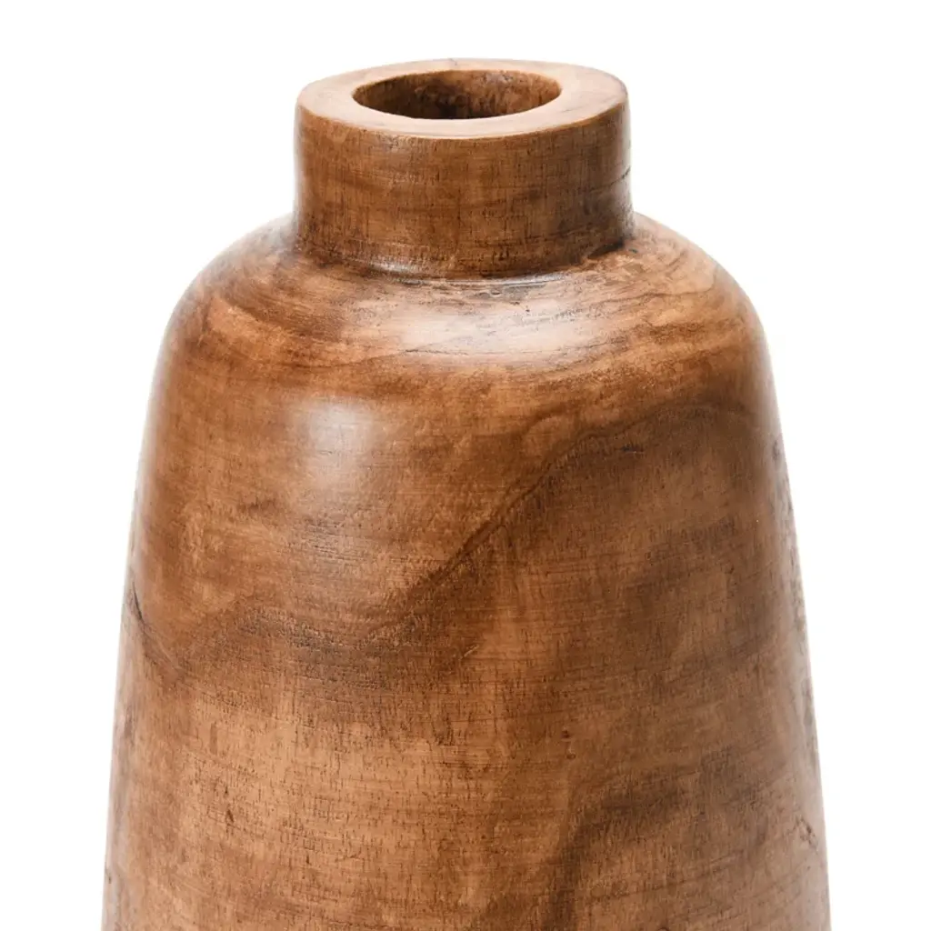 This vase is a beautiful way to display faux or real florals. Made out of paulownia wood, this vase has a simple brown coloring. This small vase looks great on table tops and shelves, and displays any florals or stems in a beautiful way