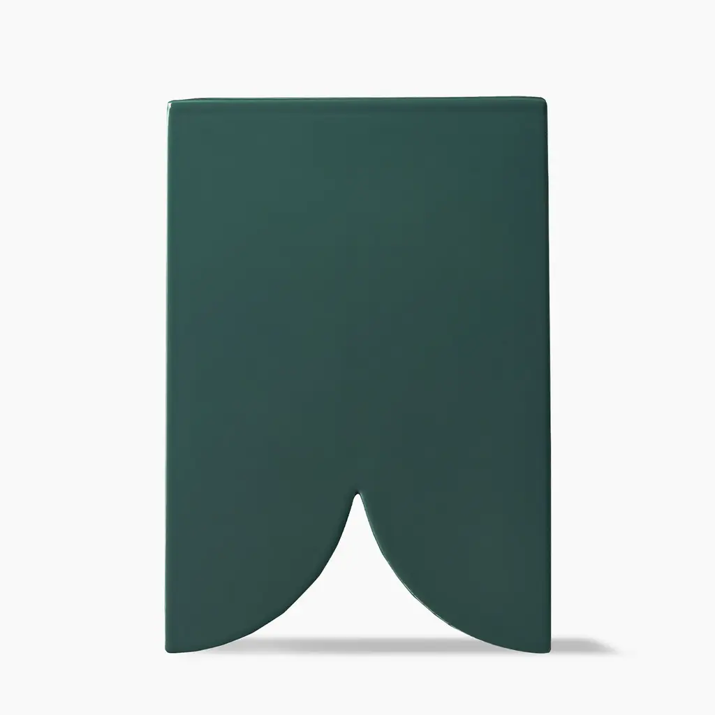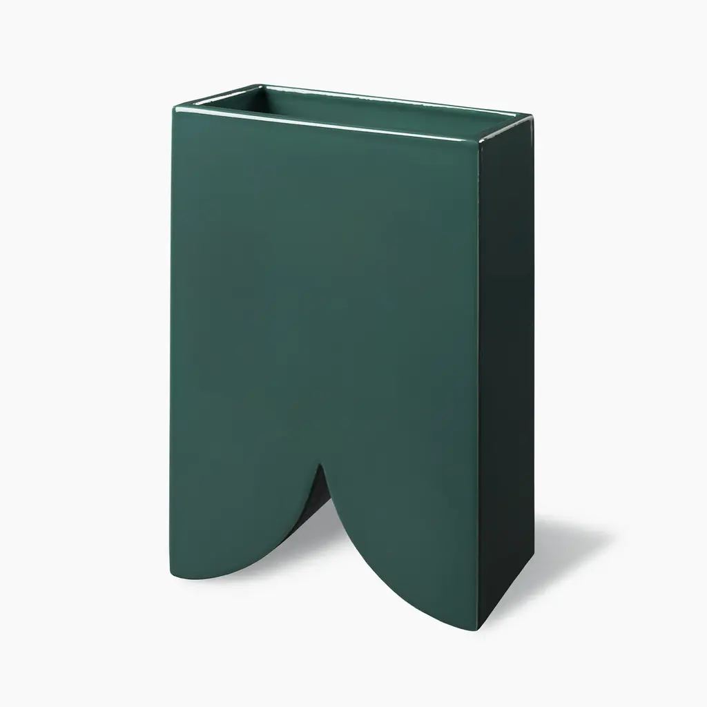 This green-glazed ceramic vase belongs to a series of minimalist pieces Muller Van Severen designed for Bitossi for synthesizing art and design. The lower scalloped edge lends the piece a striking sculptural look without weighing down its characteristic clean-lined silhouette. Different shapes and colors are available in the Artemest catalog.