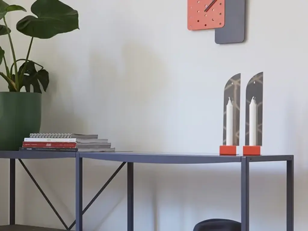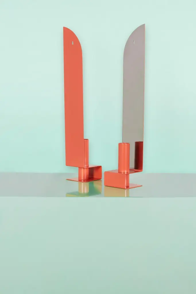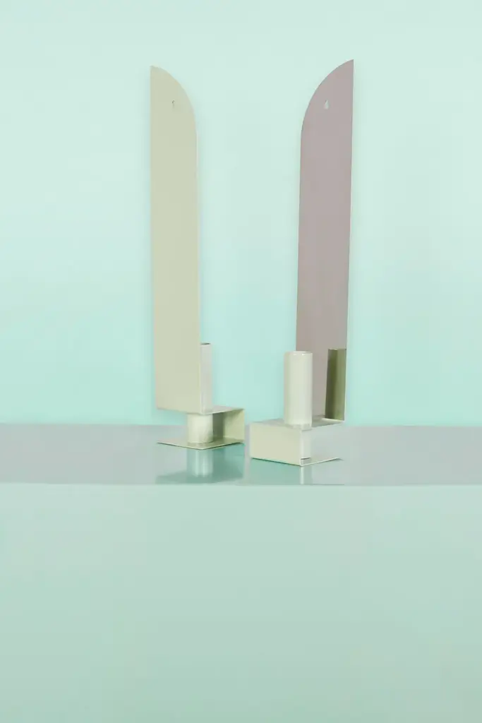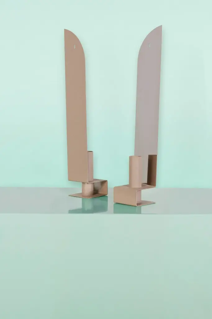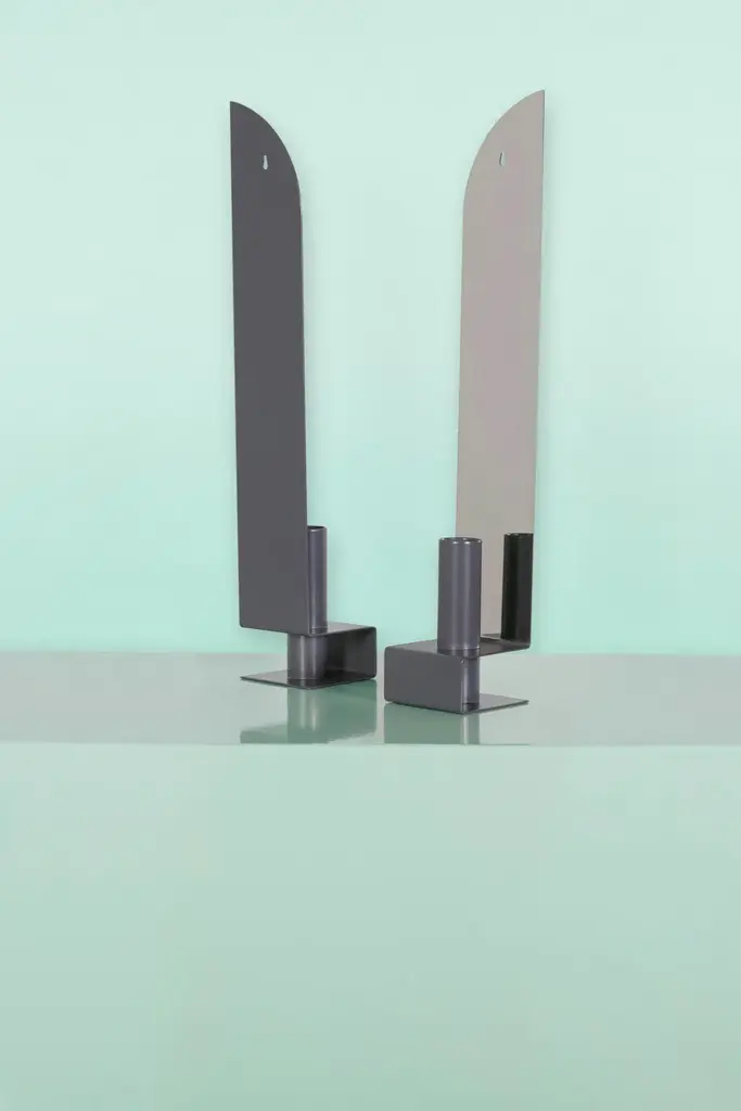 Narciso is a decorative object born from a single sheet of metal folded on the bottom. Available in two versions, with flower holder or candle holder function, this piece of furniture can be hung or laid flat.