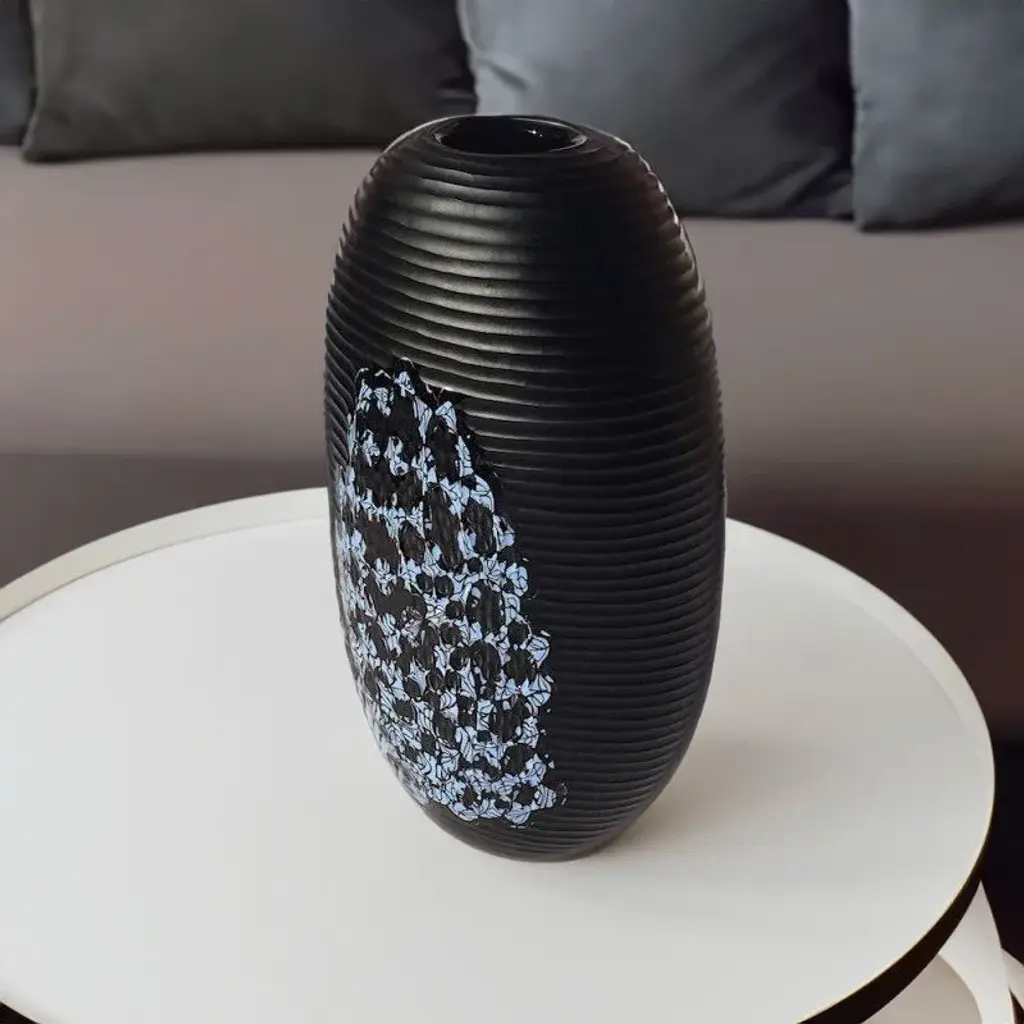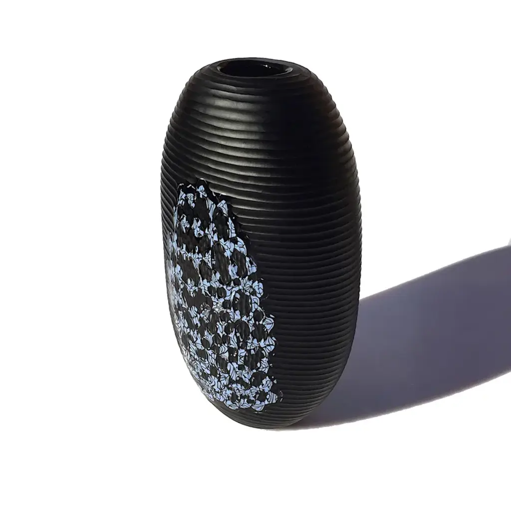 NARCISO is a graceful Murano glass oval vase with hexagonal patterns surface in black and white colors. A valuable Made in Italy gift idea for a special occasion.Here you can find unique handmade glass vases in original Murano glass. They are the product of a long tradition of Venetian glass craftsmanship that has been going on for centuries. They are authentic works of art that perfectly combine the tradition of Murano glass processing and the innovation of contemporary Italian design. All YourMurano products are artisanal and of the highest production quality. Non-substantial variations in shape, size, color, and/or minor imperfections are inevitable and are typical of manual glasswork, highlighting the artisanal craftsmanship.