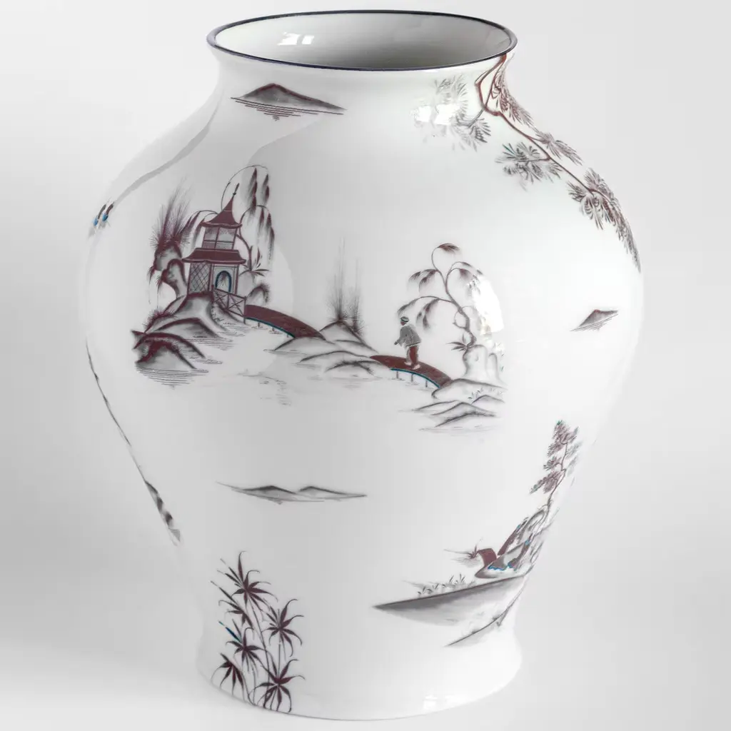 Natsumi Amphora Porcelain Vase With Japanese Landscape H27cm