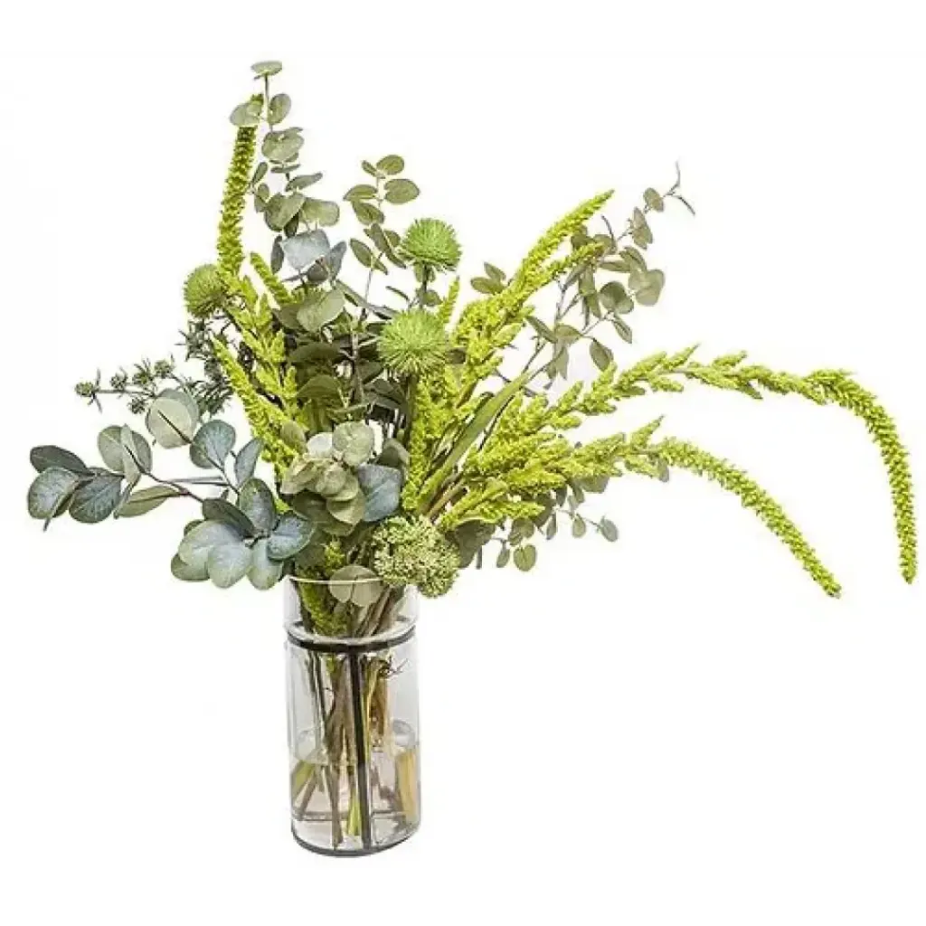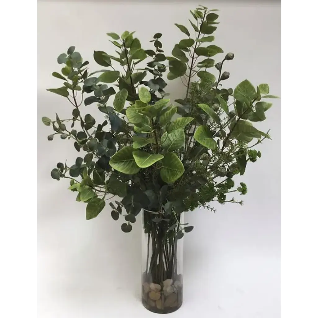 Nature's Elegance Faux Boxwood Plant In Glass Vase