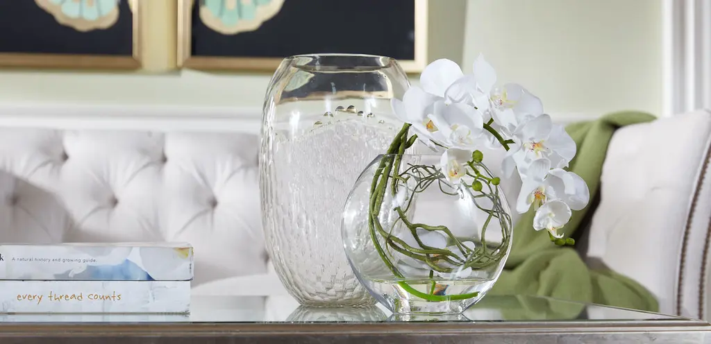 To craft our Naveah vases, artisans mouth-blow each form, then work the surface against a grinding wheel to create cut-in effects. The result is substantial yet versatile, perfect in any décor and open to almost any fill material imaginable.