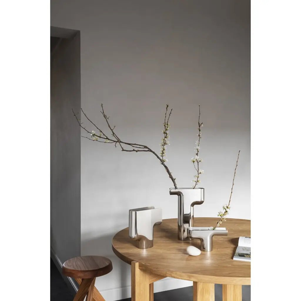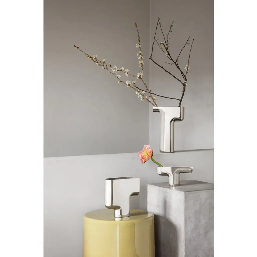 Georg Jensen's Nendo vase charms with its stunningly beautiful appearance which has been inspired by nature and natural soft curves and elements. Thanks to its unique shape, the beautiful vase also functions as a pitcher: the shape of the vessel will sure delight guests when you are serving refreshments at dinner parties. The multi-purpose vase is made of stainless steel, which is polished silver and shiny. The vase is delightful on its own, but is also easily combined with other vases and candleholders from the Nendo collection to create stunning installations.