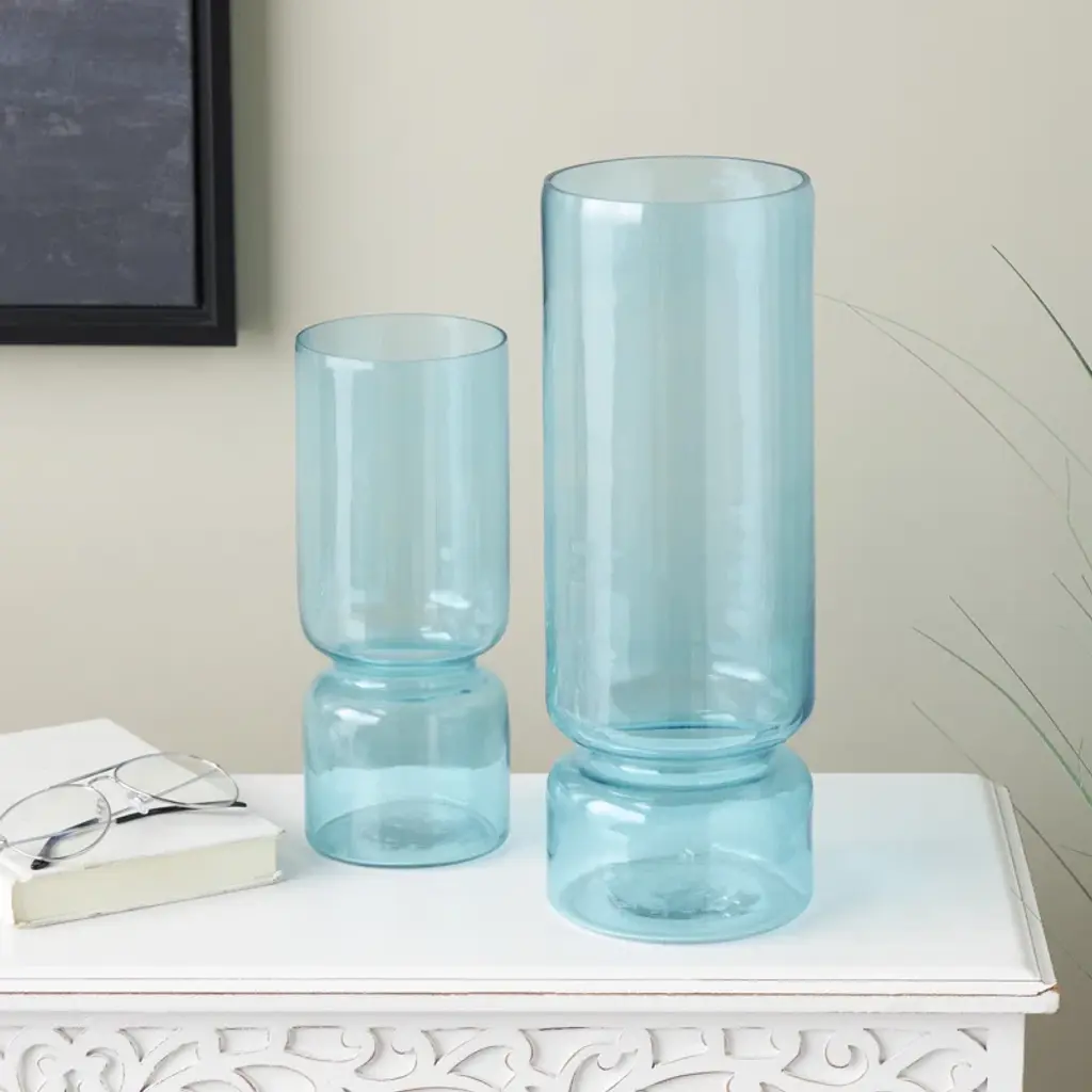 The cylinder glass vase set can be used as standalone pieces to enhance any corner of your home or can be filled with artificial arrangements to add a touch of nature. This green-colored vase comes as a set of 2.