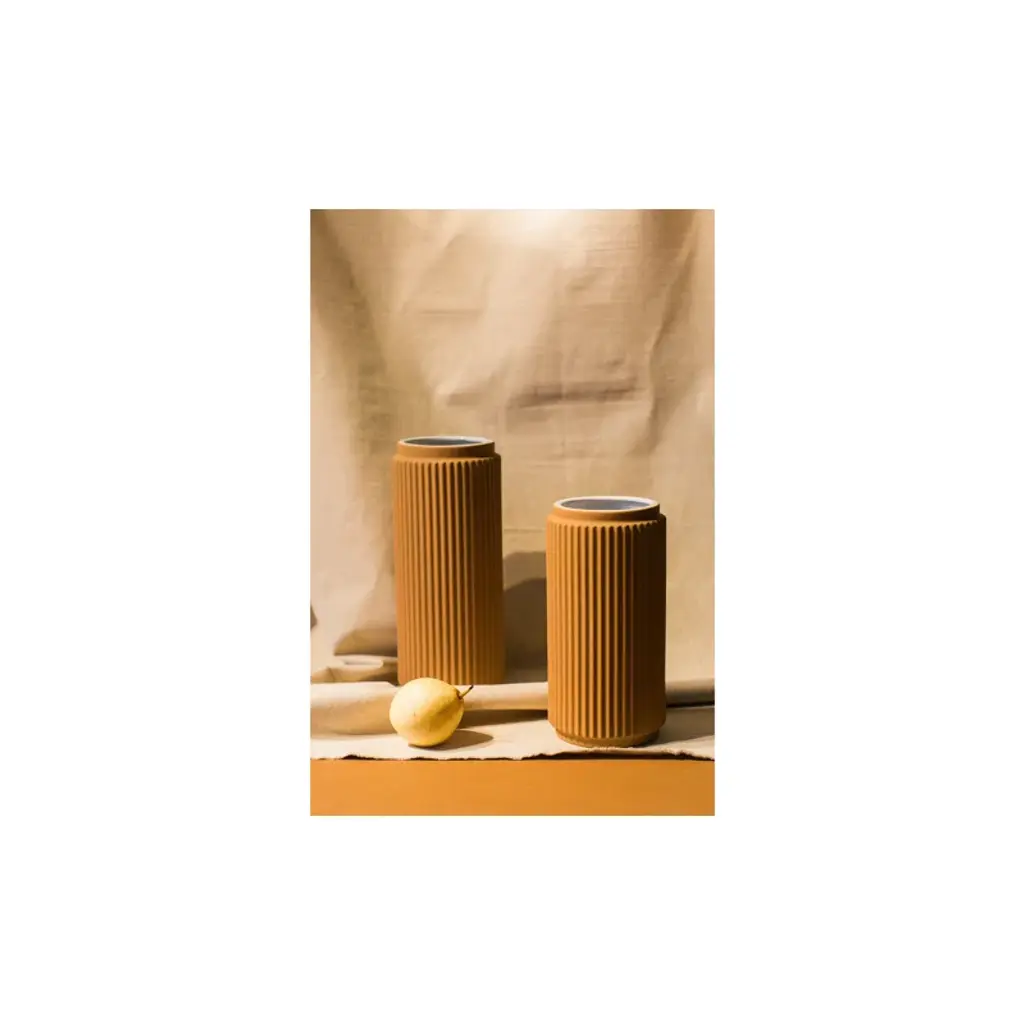 Cast convention sideways and introduce vibrant, tactile textures to your tabletops, sills, sideboards and worktops alike with Nettie, our terracotta-inspired beauty. Pick a few blooms and lively greens along the way, this 10-inch handmade planter vase will turn any dull corner into a vibrant focal point with its height play. 100% stoneware, this slender, grooved creation comes in a taller counterpart – together, these sleek ceramics are a statement-making moment waiting to happen.
