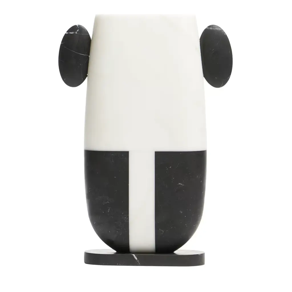 Vase in white Michelangelo, red Levanto and black Marquinia marbles.Size: 27.3 x 38.4 x 7.3 cm, smooth finishing. Commercial name: Pietro, Homage collection by the Italian designer Matteo Cibic. Made in Italy, hand finished.“A painter’s drawings are like the personal diary of a scholar”, wrote Lamberto Vitali in reference to Amedeo Modigliani’s sketches, which appear to have been recreated in Pietro: through the elongated form, the descriptive approach, the treatment. A vase that transcends its purpose, celebrating art making like a subconscious gesture, a collective memory, the inheritance matter. Vases made of various marbles cannot guarantee water tightness, better not to use for cut flowers unless with vials for each flower, an internal glass/plastic jar or gel water pearls.MMAIRO marble products are made of valuable materials and need to be handled with care. Any difference between similar objects and from their picture on the catalogue are due to the nature of the marble, and costitute an additional value of each piece, making it truly unique and special. The contact with acid or corrosive substances may adversely affect the surface. Hand washing is recommended. Special stain treatment, where necessary food compatible.