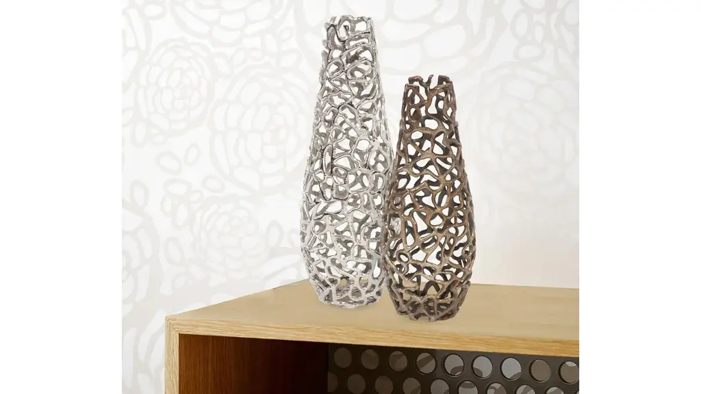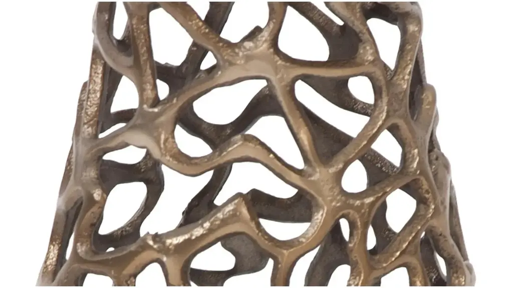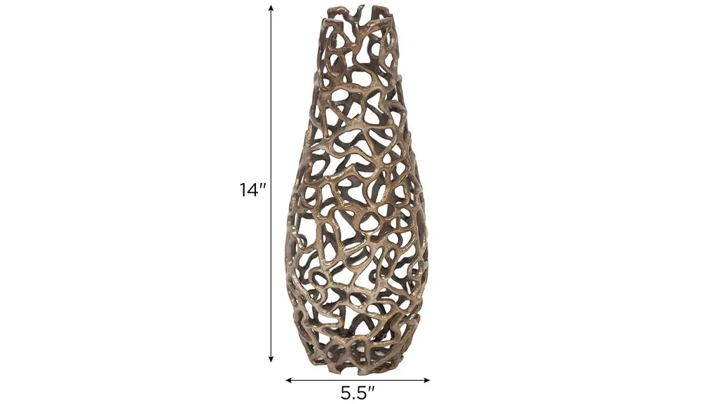 The Nicky Branch Vase captures the organic design of the bird's nest it was inspired by. Organically shaped free flowing metal work intertwines to create the intricate open work design. The handwork of soldering all of the aluminum pieces together takes a very precise skill set. It is finished in a rich, bronze color.