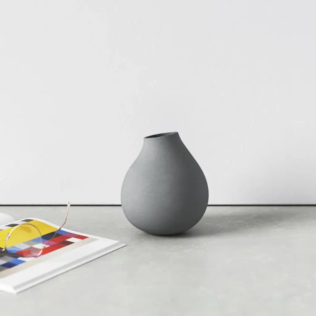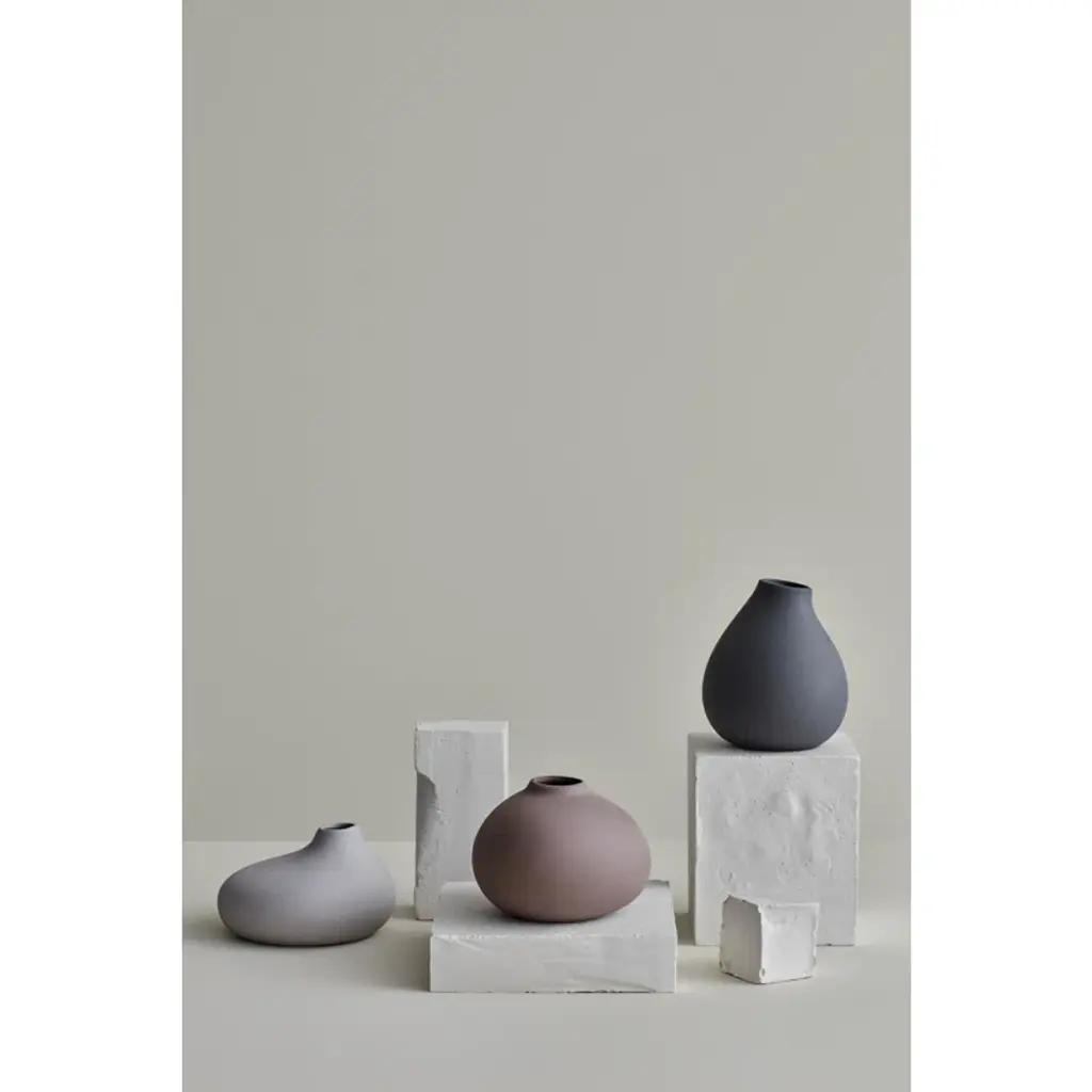 Crafted from pewter unglazed porcelain, this table vase juxtaposes an organic, gourd-like silhouette with a raw matte texture. Its timeless but slightly off-kilter shape gives it a homemade feel that complements a variety of floral styles.