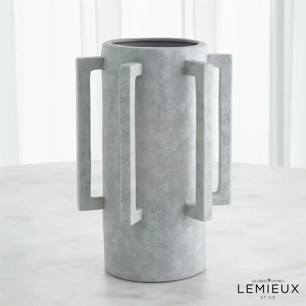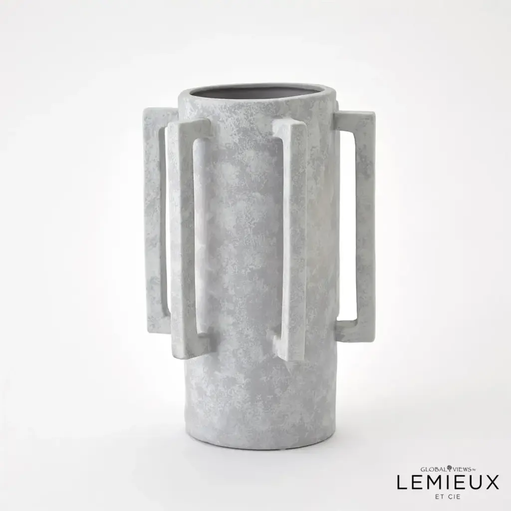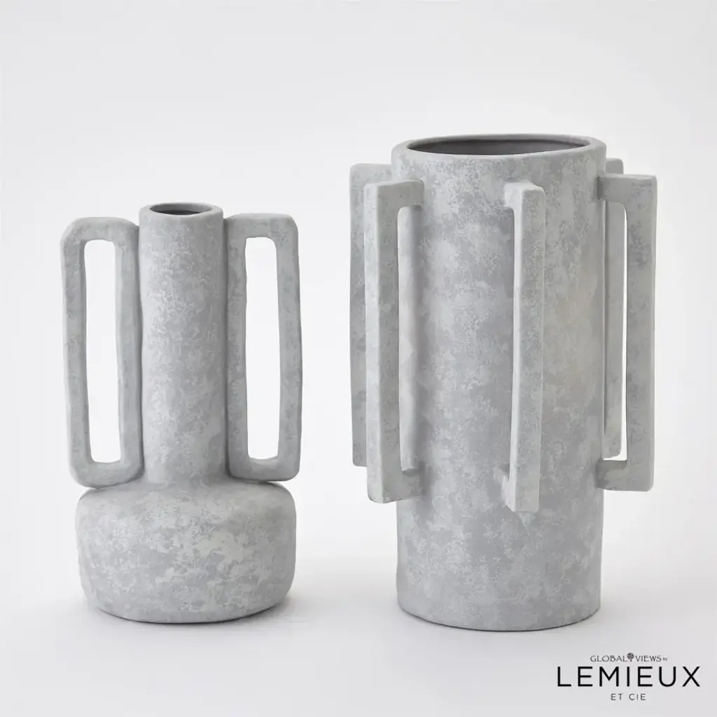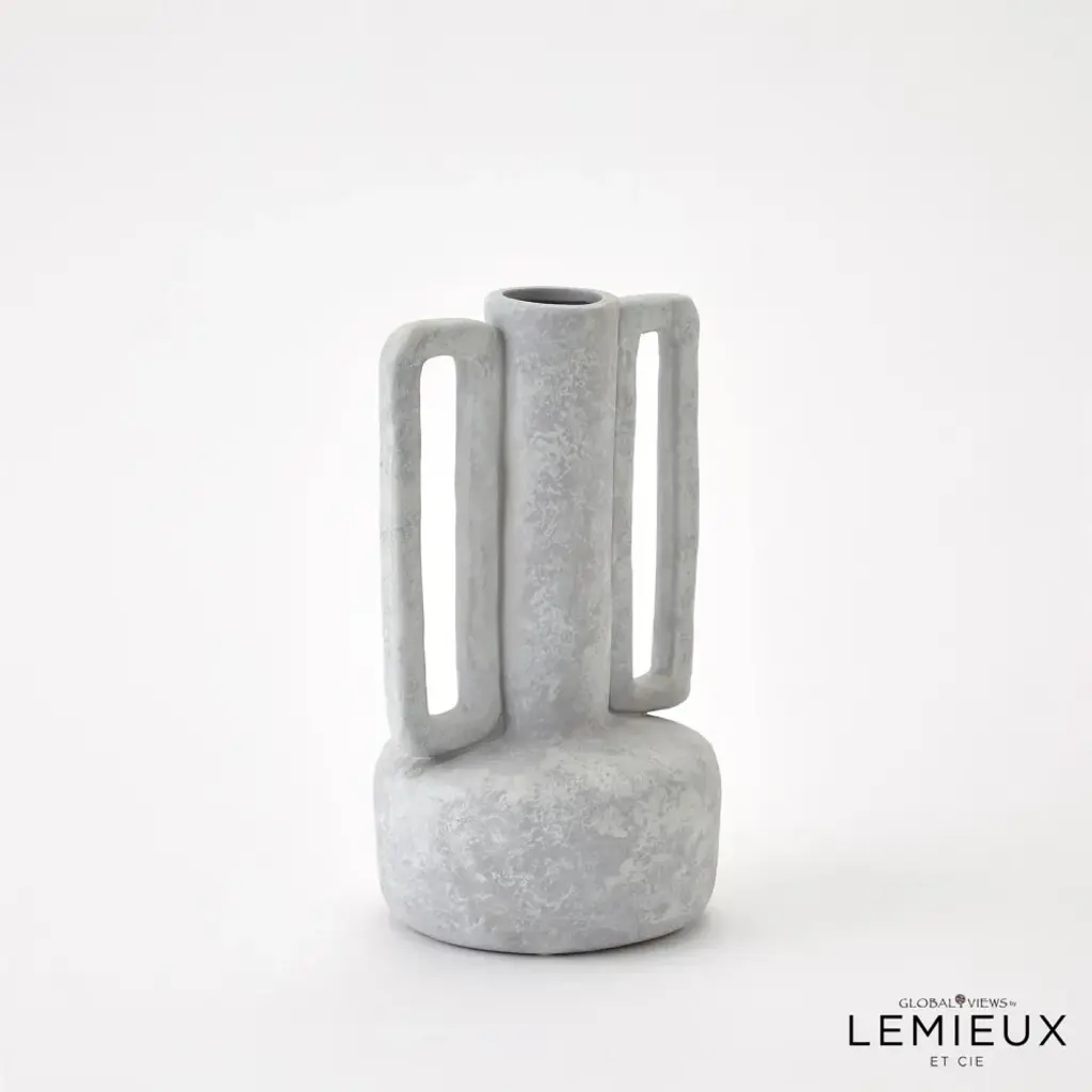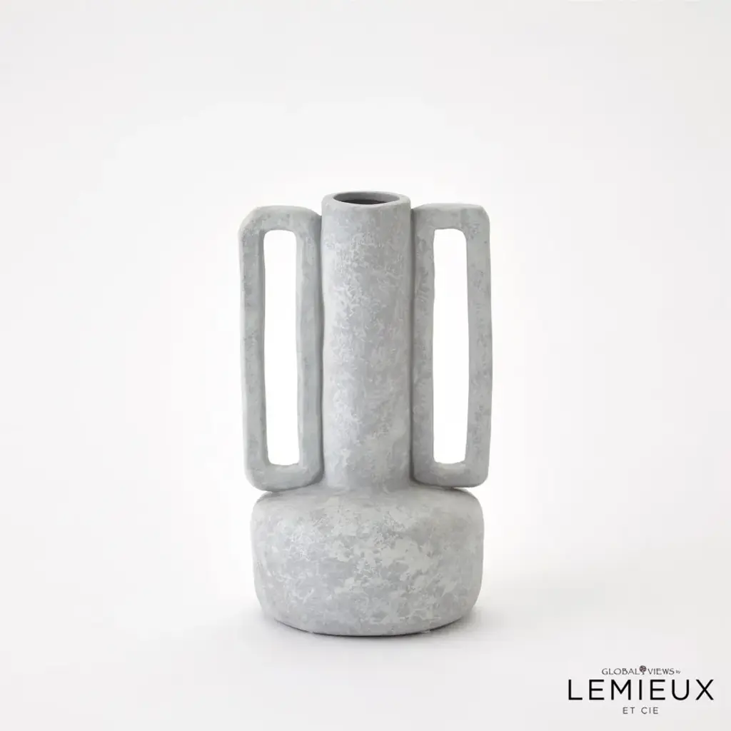 The Normandie and Bretagne Vase showcase a unique and modern design that effortlessly blends functionality with artistic beauty. With hand formed Italian ceramic handles and impeccable craftsmanship, this vase becomes a captivating centerpiece, elevating any floral arrangement or standing alone as a contemporary work of art. Available in three washed finishes - light grey, dark grey, or natural. From a fashion forward perspective, Global Views offers accessories, furniture, statement lighting, and an assortment of rugs and mirrors to add beauty and joy to your home.