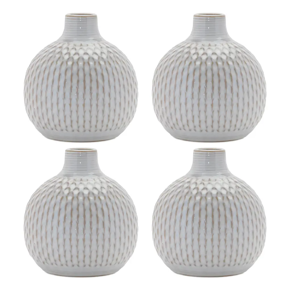 Notched Ceramic Bottle Vase, Set Of 4