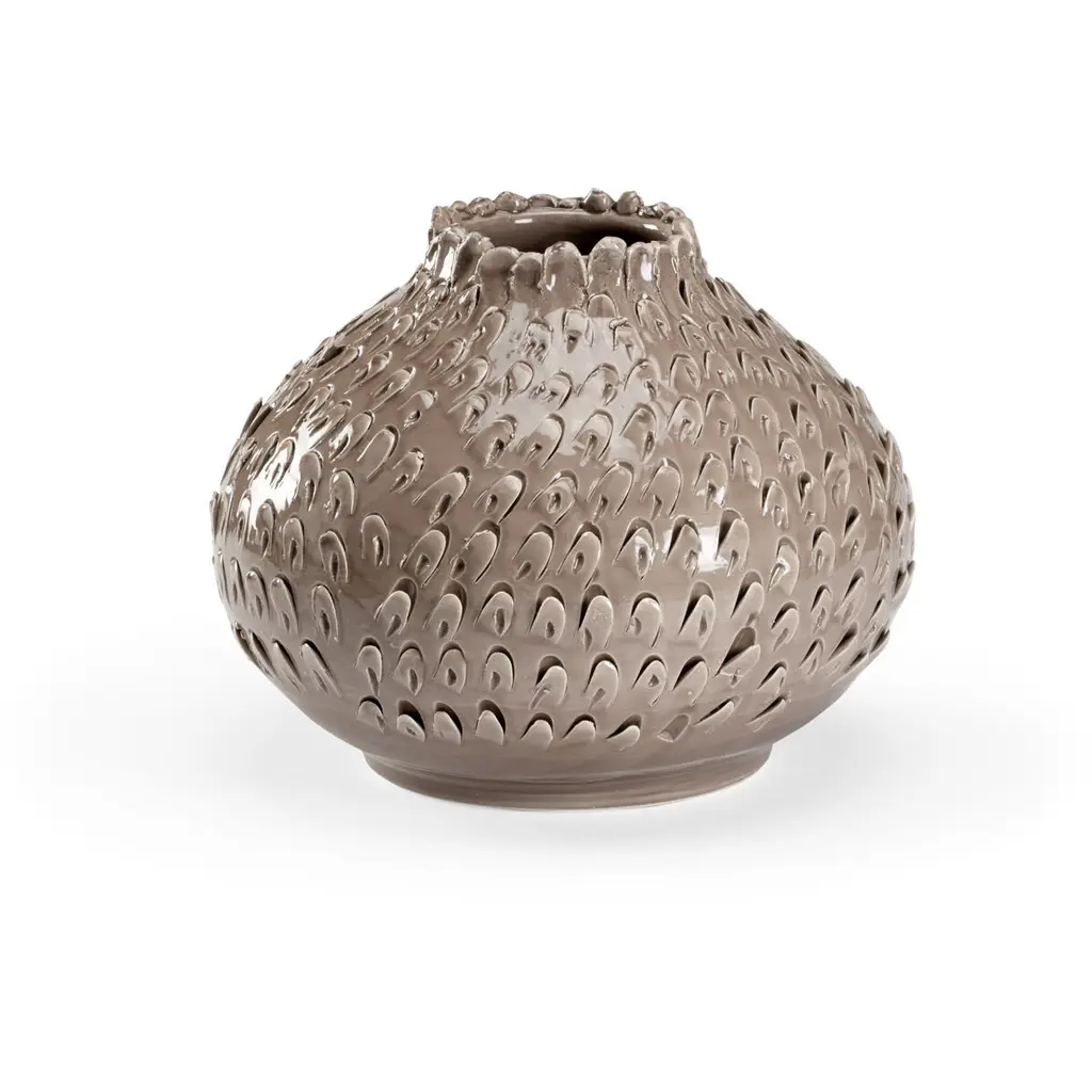 Bring a modern touch to your space with the Notched Ceramic Bottle Vase set. Featuring soft gray tones with a shiny glazed finish, these vases are designed with a unique notched texture and a bottle-neck opening. Sold in a set of four matching pieces, these vases are perfect for adding a chic and minimalist flair to your bookshelf, mantle, or coffee table. Display them with fresh garden stems or dried florals to introduce a natural element to your decor. Ideal for contemporary or minimalist interior styles.