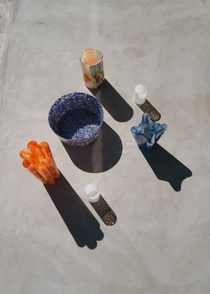 Based in Milan, Stories of Italy is a design studio that uses time-honored techniques to create beautifully crafted modern objects. Their Nougat Collection resulted from experiments reusing pieces of Murano blown glass, resulting in one-of-a-kind vases, bowls, and glasses that feature a mix of transparent colored shards against an opaque white background. Made in Italy.