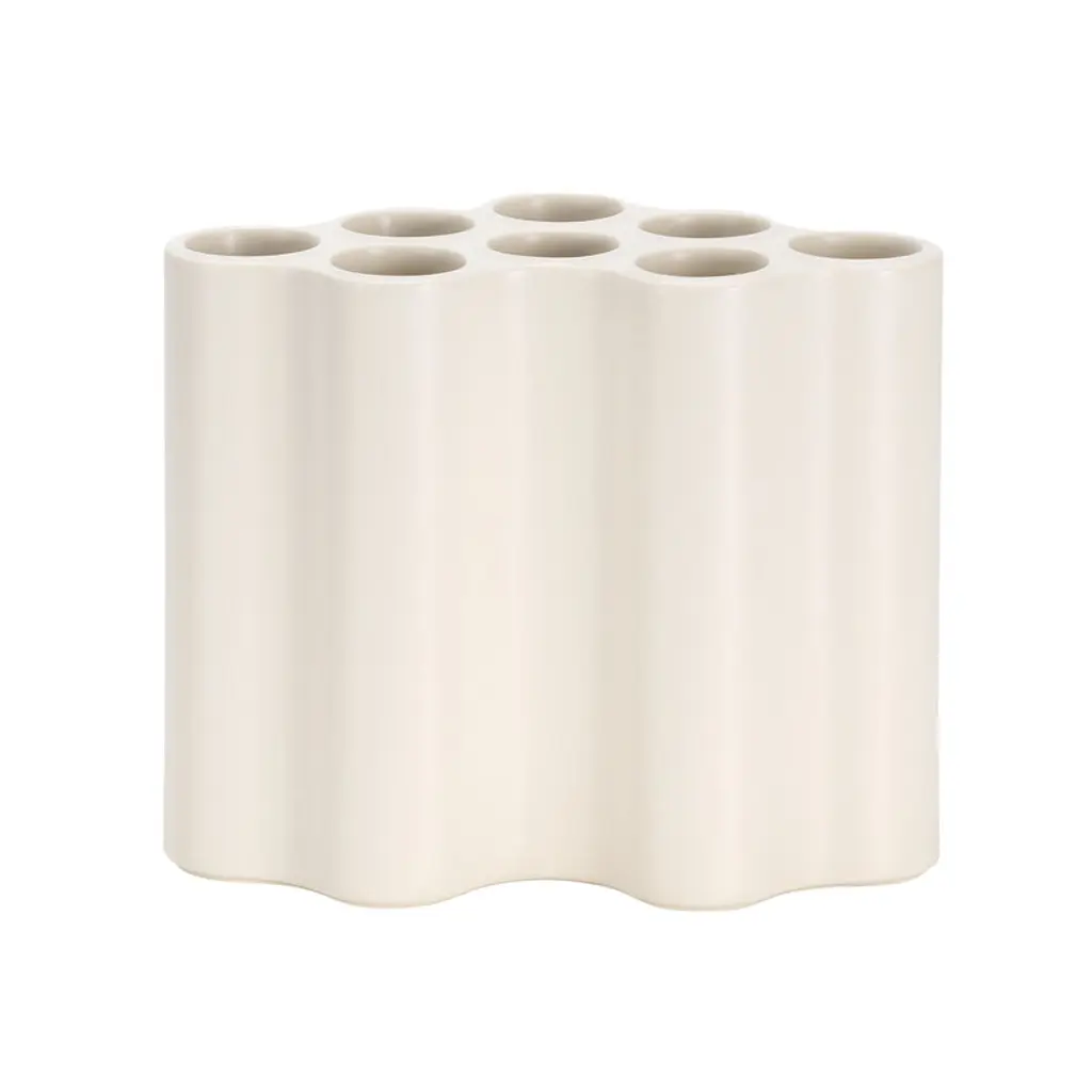 The elegant Nuage Vase, designed by Ronan and Erwan Bouroullec for Vitra, features a cloud-like shape that can be arranged in clusters or large-scale configurations. Made of extruded aluminum profiles, this luxurious vase is divided into eight individual tubes, perfect for artful, almost Ikebana-like arrangements. Add a touch of sophistication to your home with the Nuage Vase. Highlights