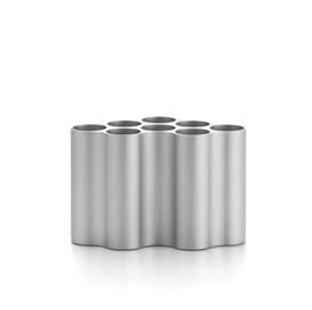 For the Nuage vase, the designers executed the cloud motif in extruded aluminum profiles of varying lengths. The cavities in the basic form are now positioned upright, dividing the vase into eight individual tubes that can be used for the artful arrangement of flowers and grasses. The undulating surfaces, with an anodized finish in various colors, produce an attractive interplay of light and shadow. Thanks to their precise outer contours, the vases can be fitted together to create entire ‚cloud formations‘.