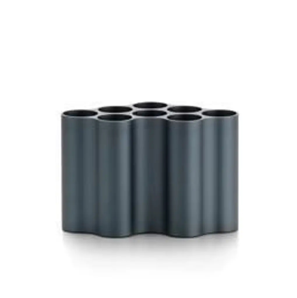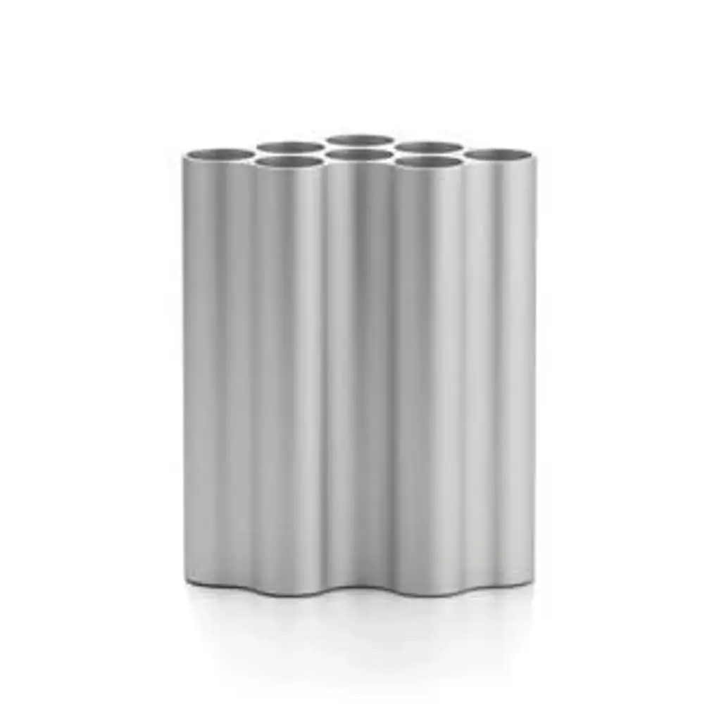 For the Nuage vase, the designers executed the cloud motif in extruded aluminum profiles of varying lengths. The cavities in the basic form are now positioned upright, dividing the vase into eight individual tubes that can be used for the artful arrangement of flowers and grasses. The undulating surfaces, with an anodized finish in various colors, produce an attractive interplay of light and shadow. Thanks to their precise outer contours, the vases can be fitted together to create entire ‚cloud formations‘.