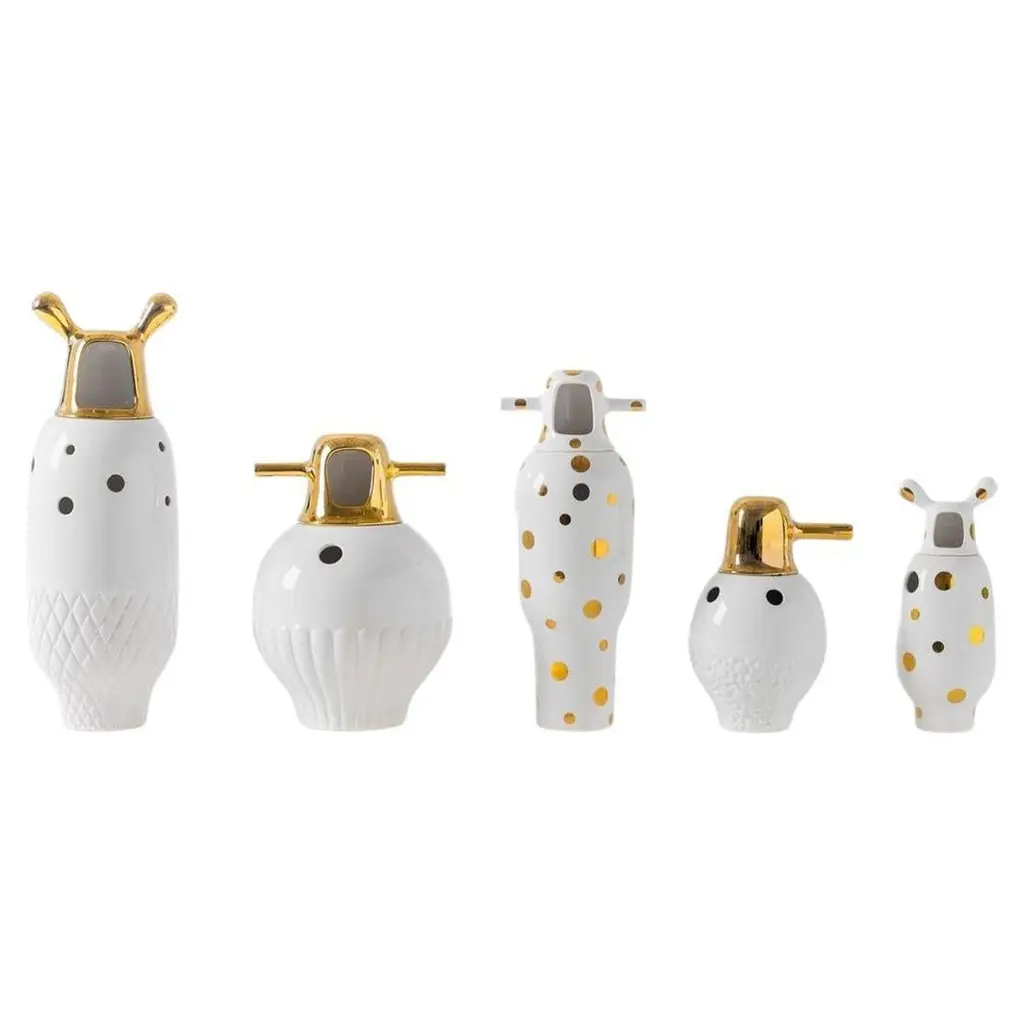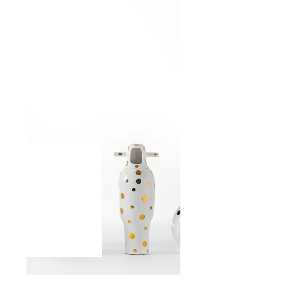 Number 4 Showtime 10 vase by Jaime Hayon Dimensions: Diameter 21 x H 48 cm Materials: Made up of two pieces in glazed stoneware, with a white finish and 24-carat gold plated decorations.Also available in other designs.His proposal was 24-carat gold, which has been a great success. To celebrate the 10th anniversary of the Showtime Collection, we asked Jaime for new vase finishes.In 1972, a group of young architects and designers from Barcelona created BD with the aim of producing and marketing furniture and other objects for our projects, with complete creative freedom and with a criterion that has turned out to be quite different from the norm at companies in the sector, regarding both the shape and function.