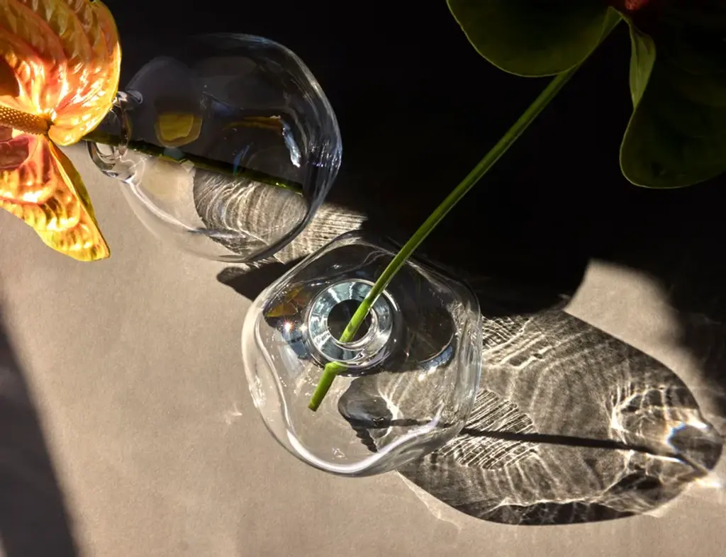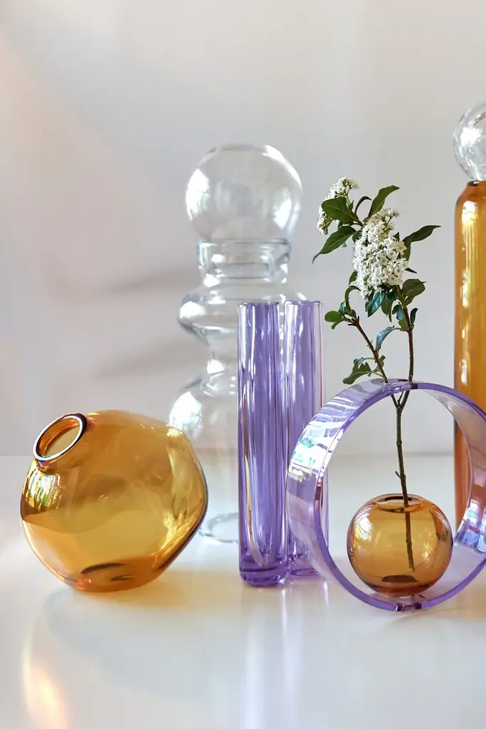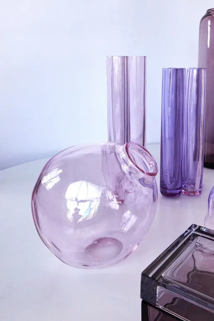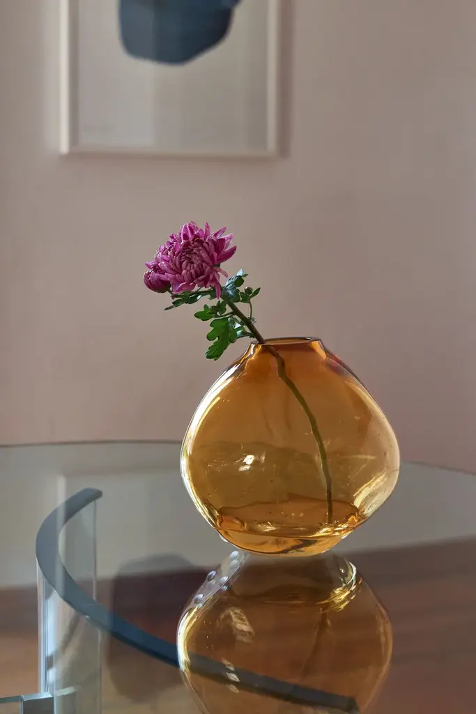 NUVOLA is a blown glass vase.It can serve both as a sculptural crystal object and a flower vase. Each Nuvola is made perfectly round and then dented by hand one by one, guaranteeing its uniqueness and stability. A crystal pieced artfully created with the traditional hand-blowing technique. The purity of the crystal reflects the light, illuminating the interior in which it is placed. Variations in color or small details are the result of the craftsmanship of this article and make each piece unique.Featureshand-blown and shaped in Italycolor: pink or amber or transparentmaterial: pure lead crystal glass