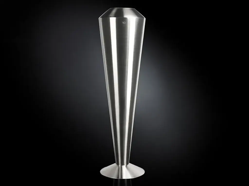 A stunning and iconic piece to complement the styling of a wedding space, special event, and home decor, this tall obelisk-shaped vase will make a statement in a refined and contemporary interior. Handcrafted of satin steel, it belongs to a series of elegant and luminous vases. Please contact the Concierge for further details.