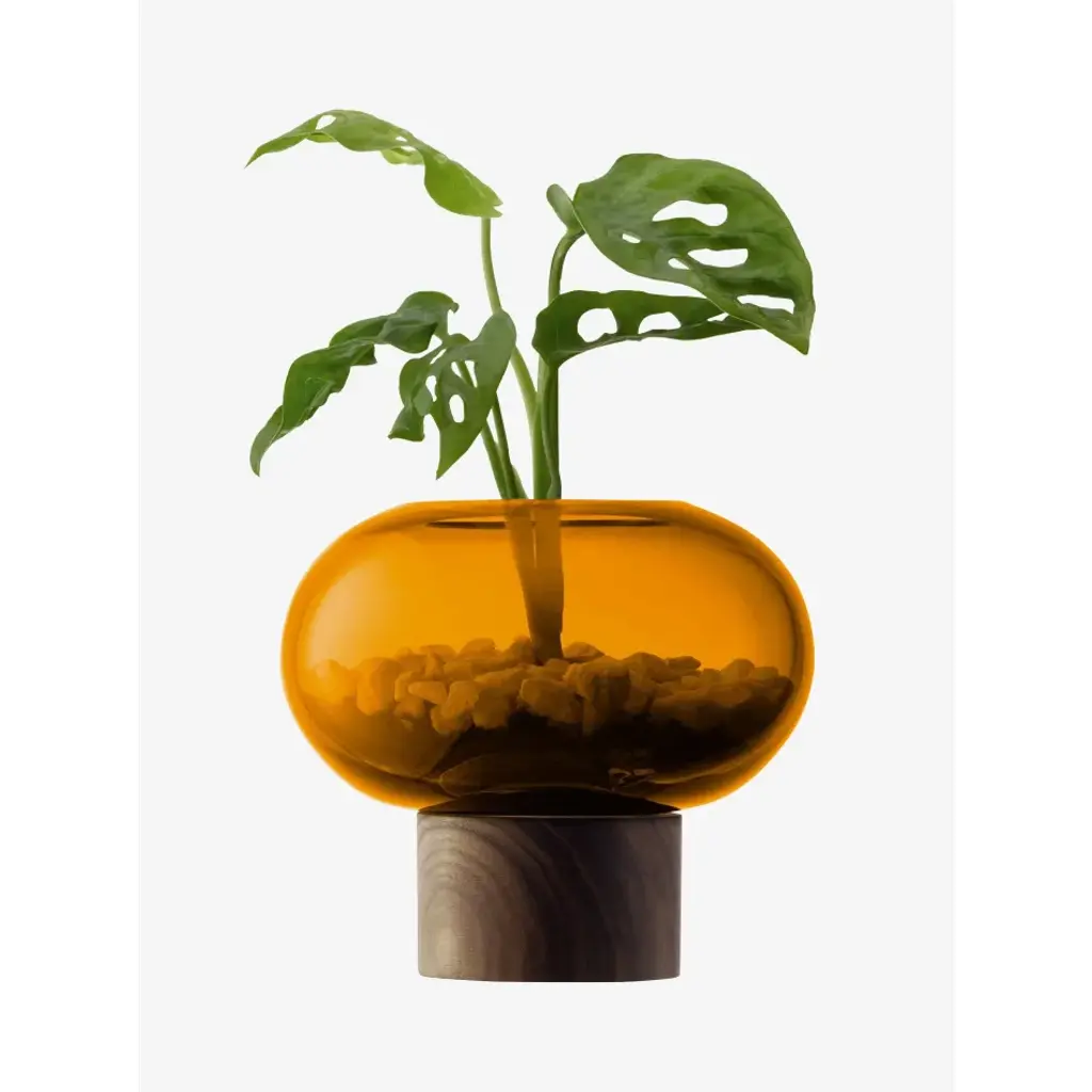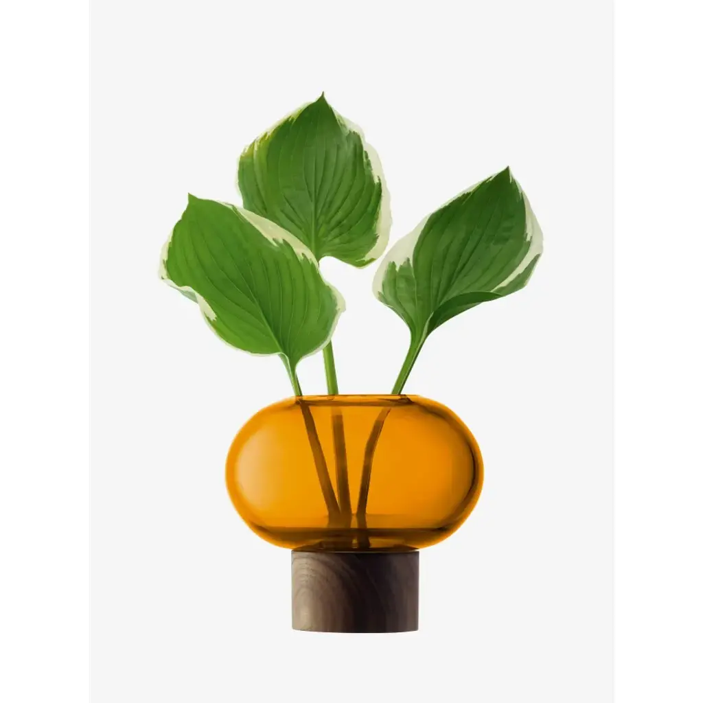 Oblate Vase Height 5.25 In /Round 6 In Amber/walnut