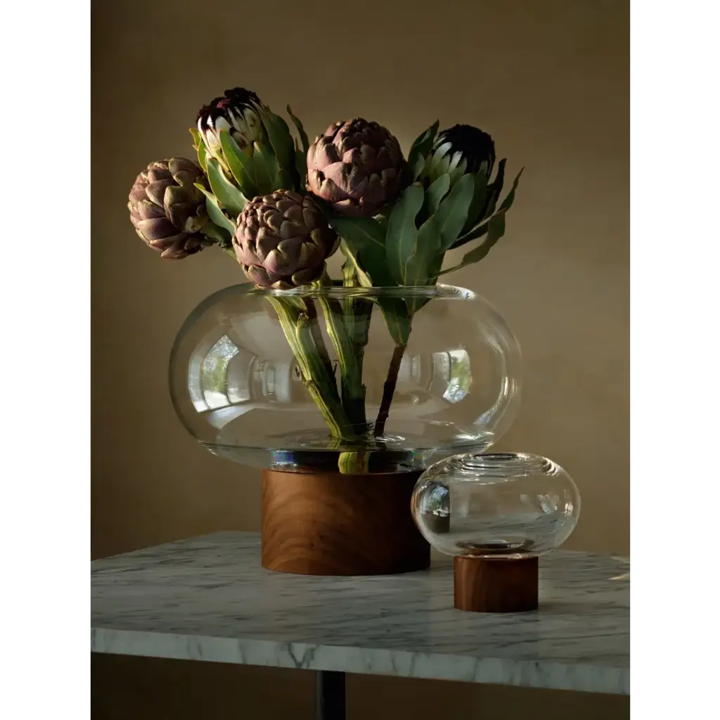 Oblate Vase Height 5.25 In /Round 6 In Clear/walnut