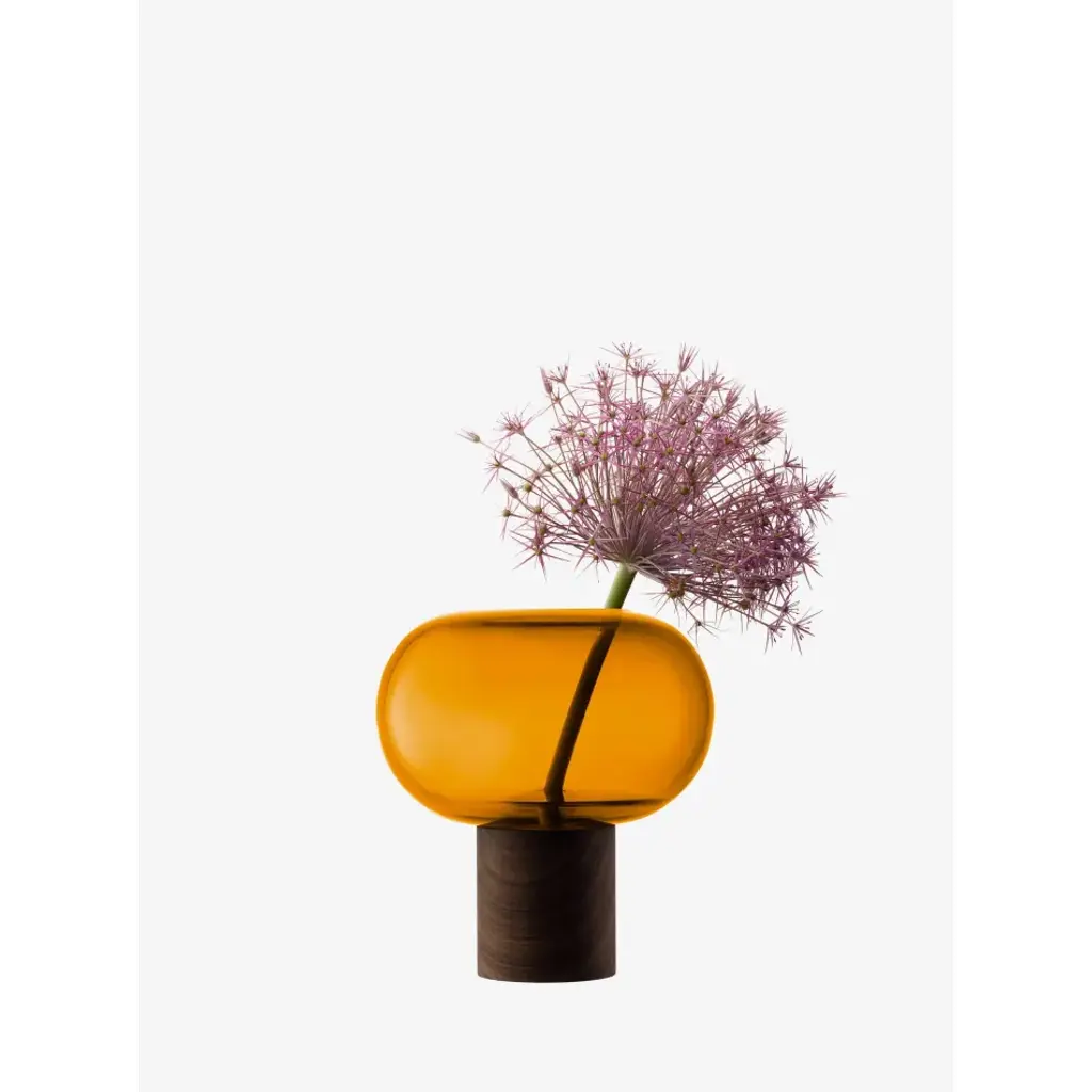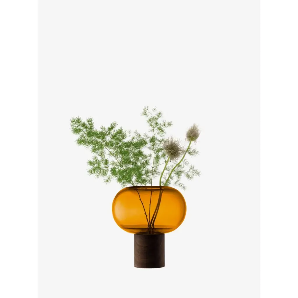 Oblate Vase Height 8.5 In /Round 7.75 In Amber/walnut