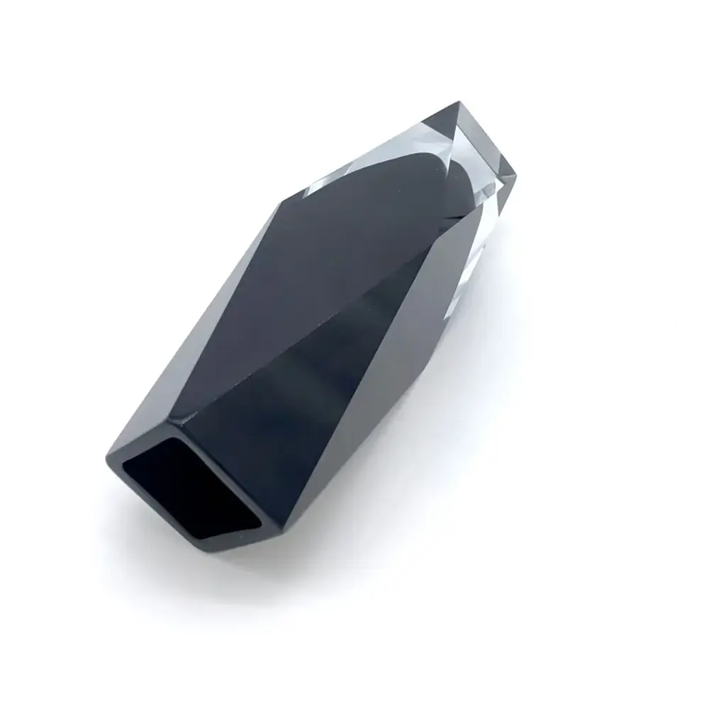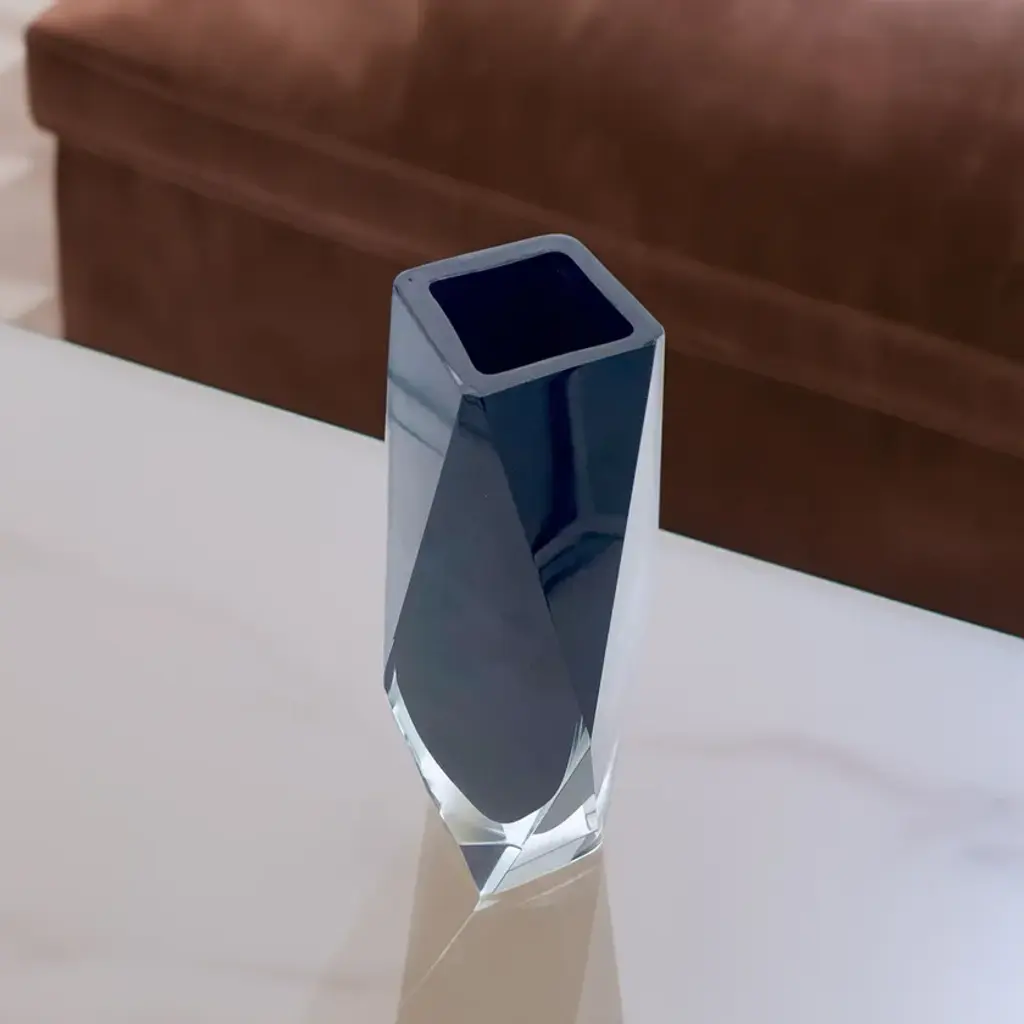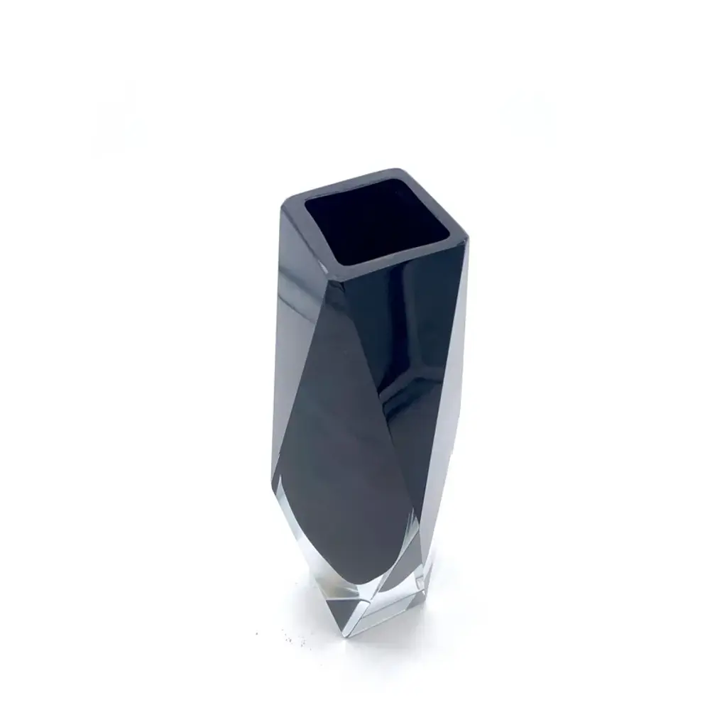 OBSIDIAN is a black elegant vase made of Murano Glass. Its cubic shape of a contemporary style makes it the perfect element to give an extra touch to a house with minimal furniture.These decorative vases are the result of the centuries-old artisanal tradition of Murano blown glass. But what happens when tradition meets innovation? These marvelous glass artworks serve as the perfect bridge between the tradition of Murano glass craftsmanship and the innovation of modern Italian design. All our products are artisanal and of the highest production quality. Non-substantial variations in shape, size, color, and/or minor imperfections are inevitable and are typical of manual glasswork, highlighting the artisanal craftsmanship.