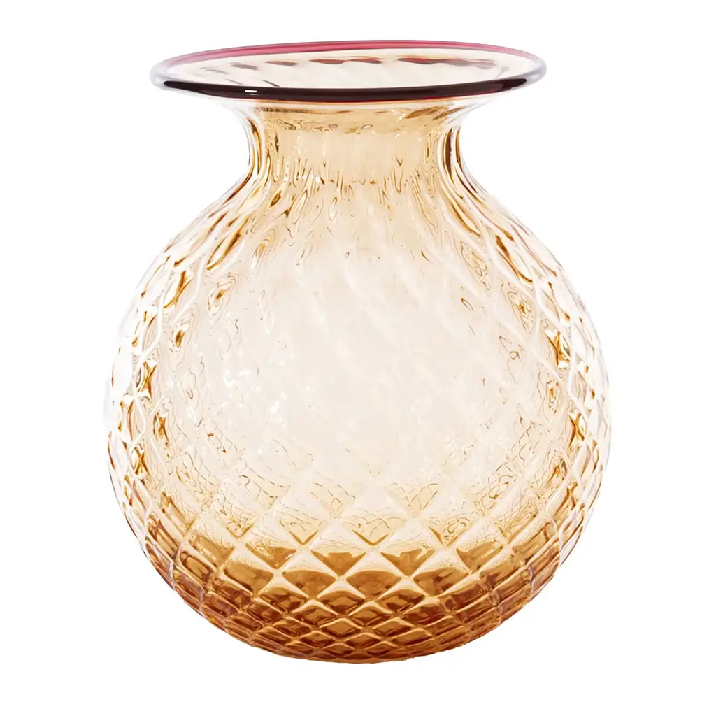 How many eyes can linger on the surface of a vase? Eyes that are enticed, enchanted, admiring, amazed, intrigued. Tobia Scarpa has flipped ordinary perspective on its head and has given his vases the power to glance back: a game made possible by transparent lenses with fine colored edges that form a multitude of soft and rounded volumes. Look at them, from every perspective. And let them look back at you.