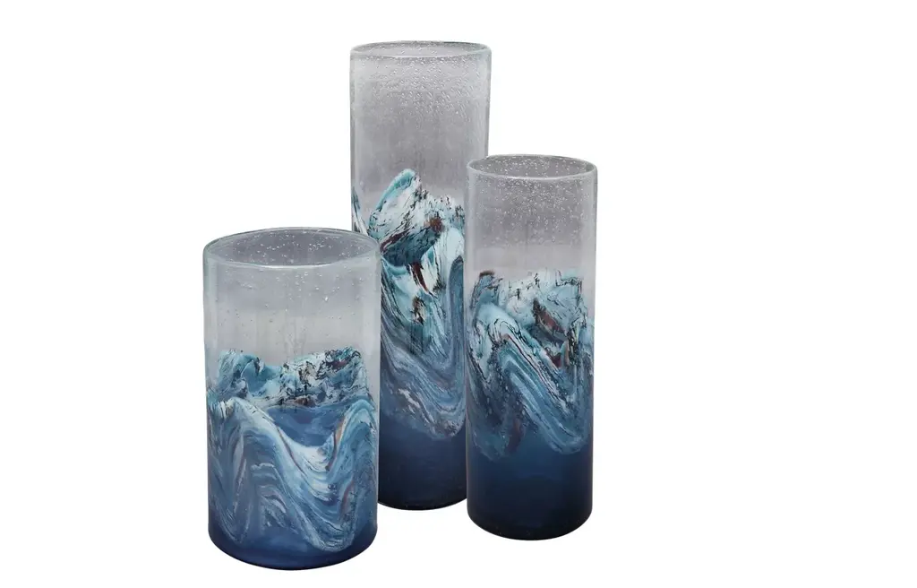 Show off your fresh flowers or greenery with our Odelia vase. Swirls of blue and white mix together for a marbled effect that makes this glass vase a unique accent to your tabletop décor. This vase is available in an 11-inch, 13-inch or 15-inch size. Please select your size before adding to cart