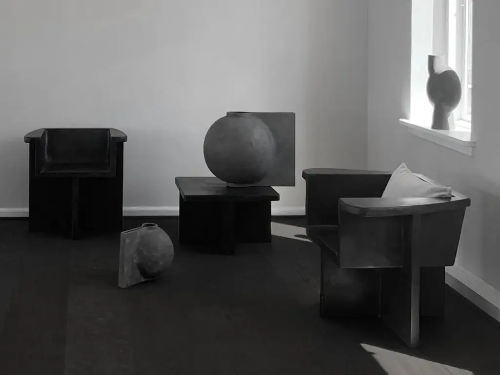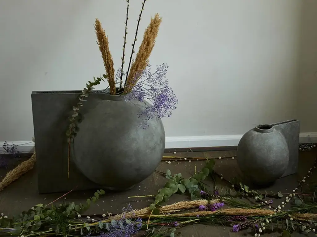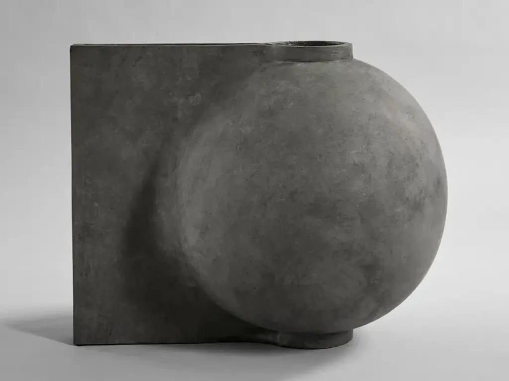 Offset is designed as a distortion of a classic vase shape. The vase drastically changes appearance, when viewed from specific angles. From one side it imitates the picture of a traditional vase, and from the other it becomes a sculptural object. Offset is made from fiber concrete and comes in two sizes.
