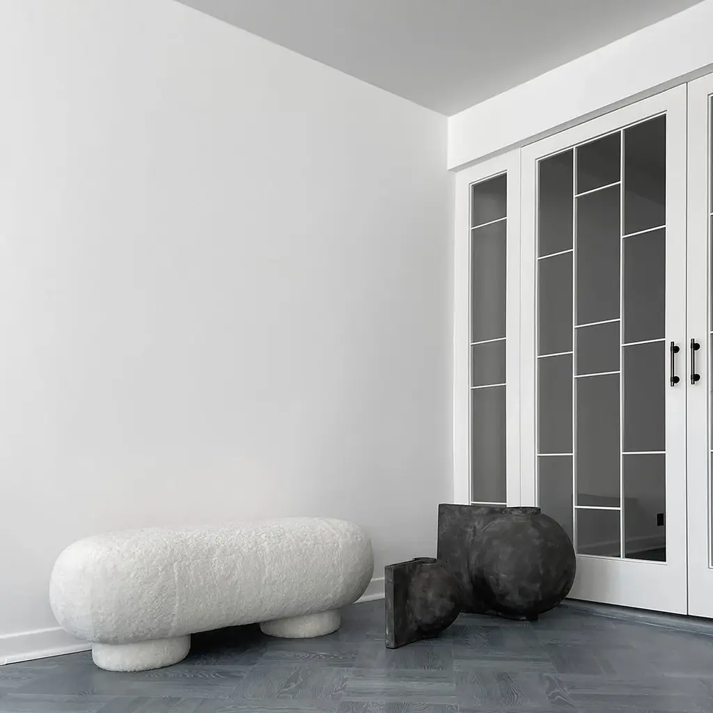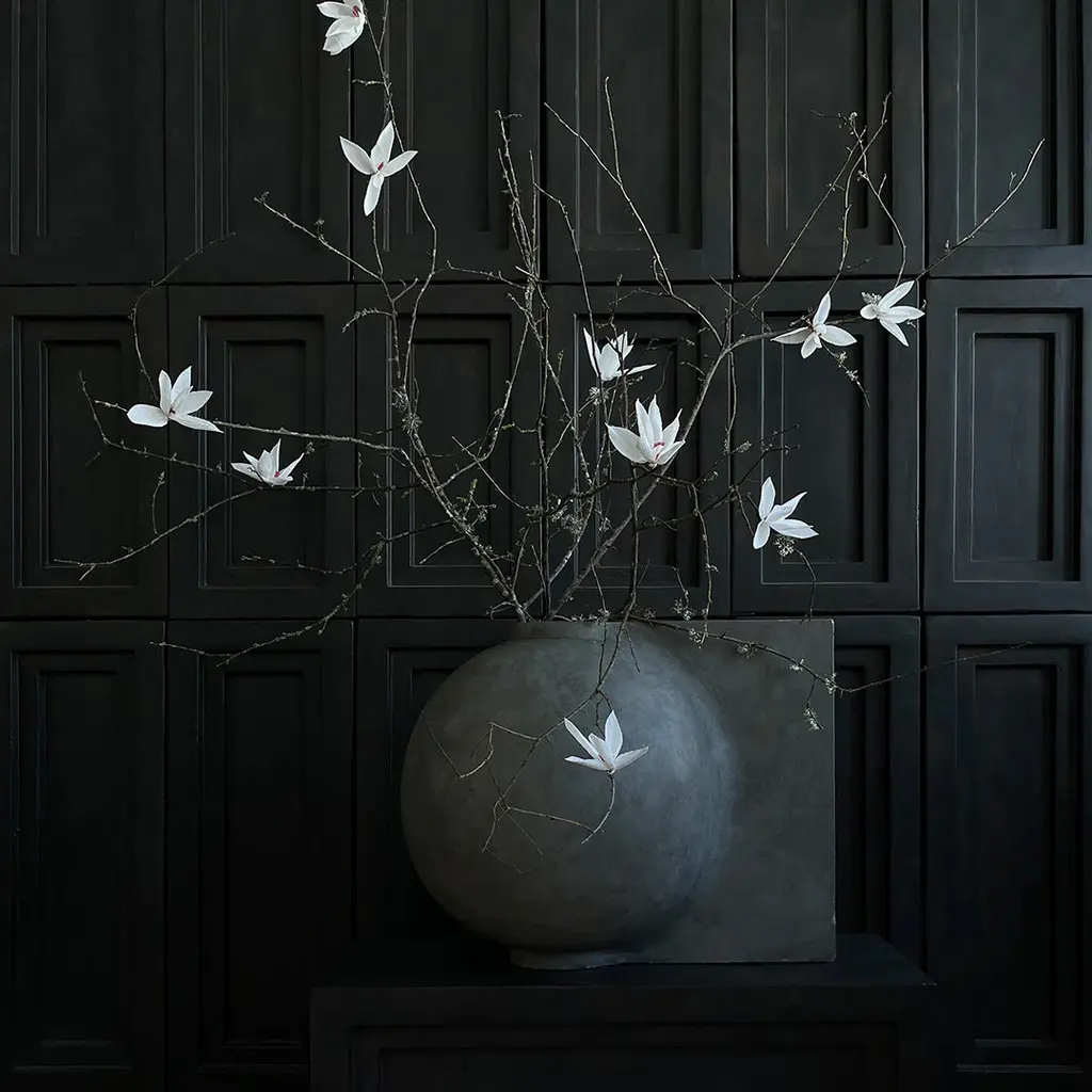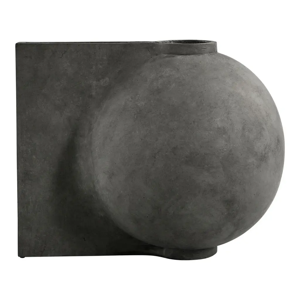 Like a design process frozen in time, the Offset vase is a distortion of the familiar rounded shape being cut. It challenges the idea of a vase and drastically changes appearance depending on the angles it is viewed from: From an imitation of a traditional vase to a sculptural object. Offset is made from fiber concrete and comes in two sizes. As it is a hand glazed natural product, the colours may vary slightly and as it is not 100% waterproof, a bag for fresh flowers is included. Designed by Nicolaj Noddesbo & Tommy Hyldahl.