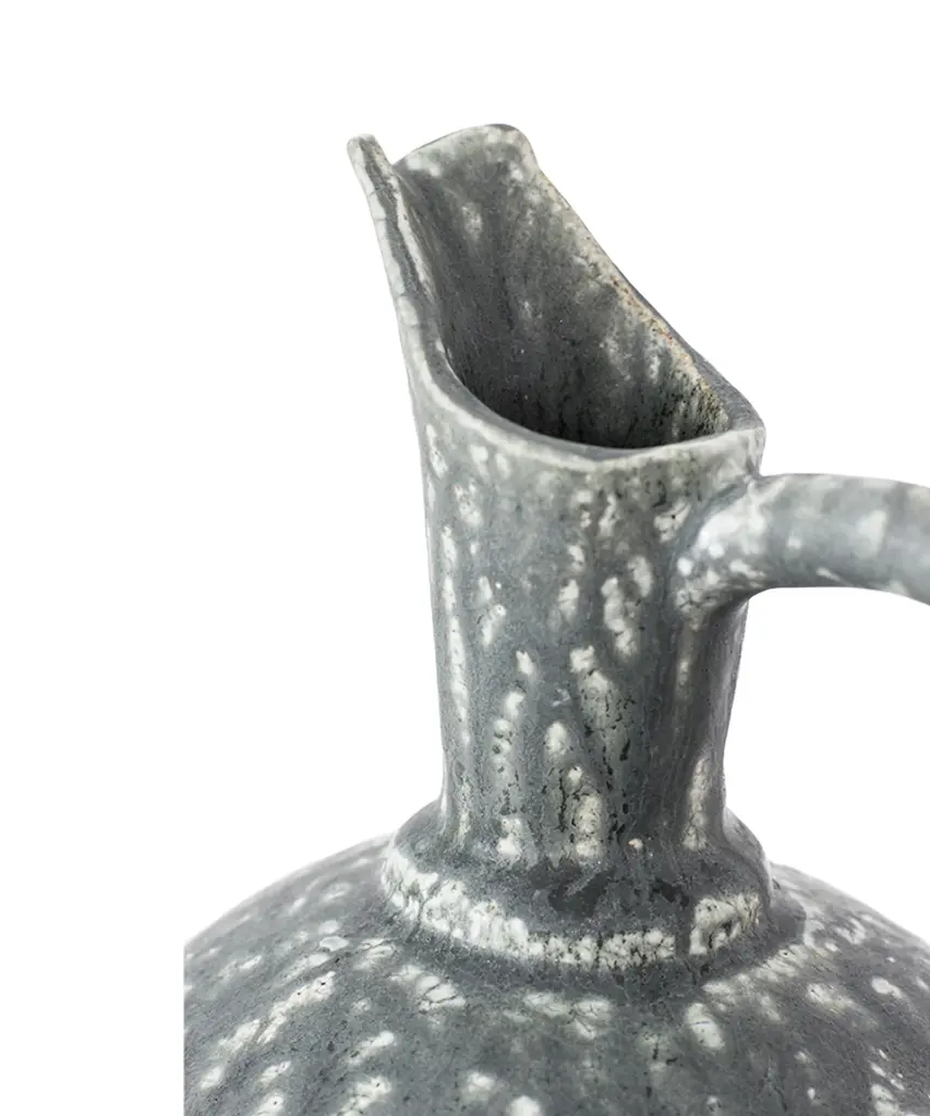 Drawing its inspiration from utilitarian ceramics, this series goes back to the origin of certain objects that were commonplace in Greek and Roman banquets: oenochoes, skyphoi and lingulae are objects that remind us of ancient times and our relationship with food and drink. These pieces combine different ceramic-making techniques, such as plaster casting, coiling technique, slabs, wax-modelling and lost-wax casting. All of the pieces in this series are made of stoneware with grog from Manises (Valencia), and self-formulated glazes. The stoneware vase in handmade to order by the Valencia-based studio, Canoa Lab.