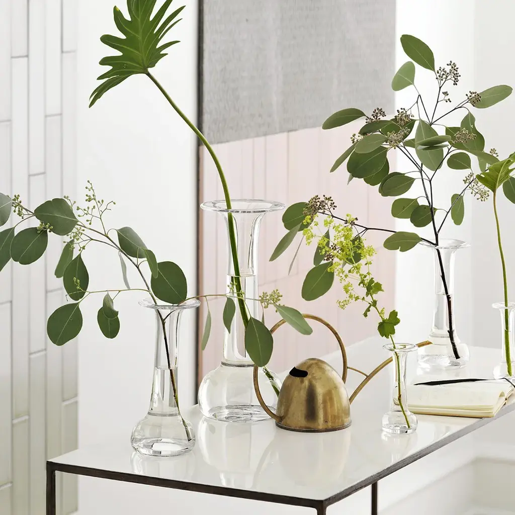 The Old English Solitaire vase created by Claus Dalby in collaboration with Holmegaard has been created to hold just a few flowers or a single bloom The vase is an addition to the Old English range, created with the specific intention of combining the old-school and the modern look with a view to accentuating the flowers in the most beautiful way The Solitaire vase has a narrow, long neck and a generously-proportioned bowl, allowing plenty of space for a single magnolia twig or a large single bloom The vase, made of mouth blown transparent glass