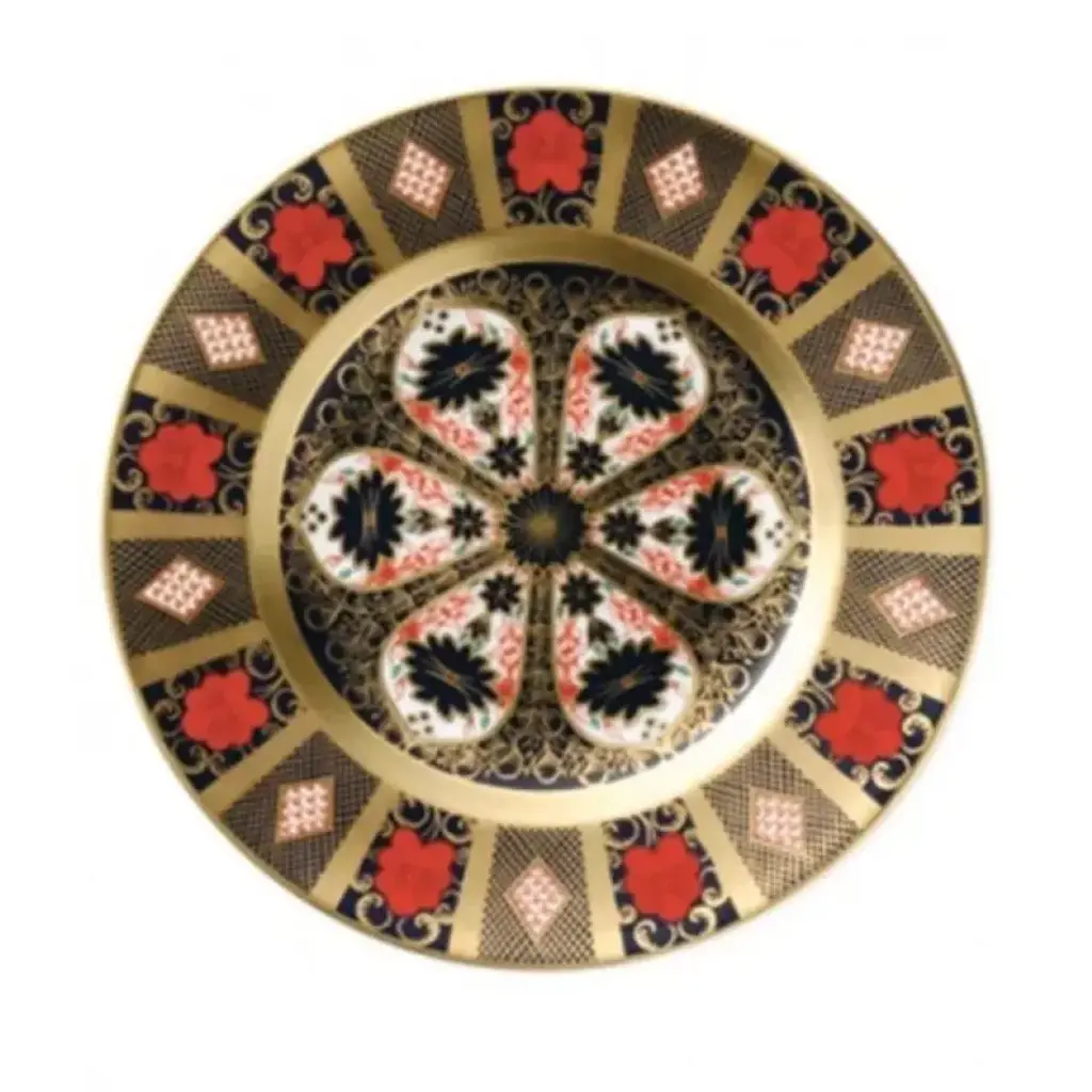 Iron red, cobalt blue, and 22 carat gold are combined to stunning effect. The Old Imari pattern 1128 embodies many Japanese and Oriental influences in both food and life, making it the perfect partner to both contemporary and traditional table settings. Made in England by Royal Crown Derby. Available by special order; please allow 12-16 weeks for delivery. The Royal Crown Derby Porcelain Company manufactures the highest quality English fine bone china and collectibles at its headquarters in Derby, England (the English Pottery district). Although the present factory was established in 1878, the original factory was set up nearby in Nottingham Road in 1750. Queen Victoria granted permission to include the title "Royal" in the company name in 1890.