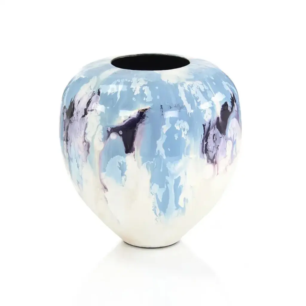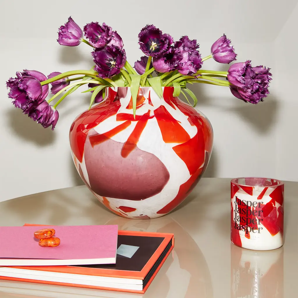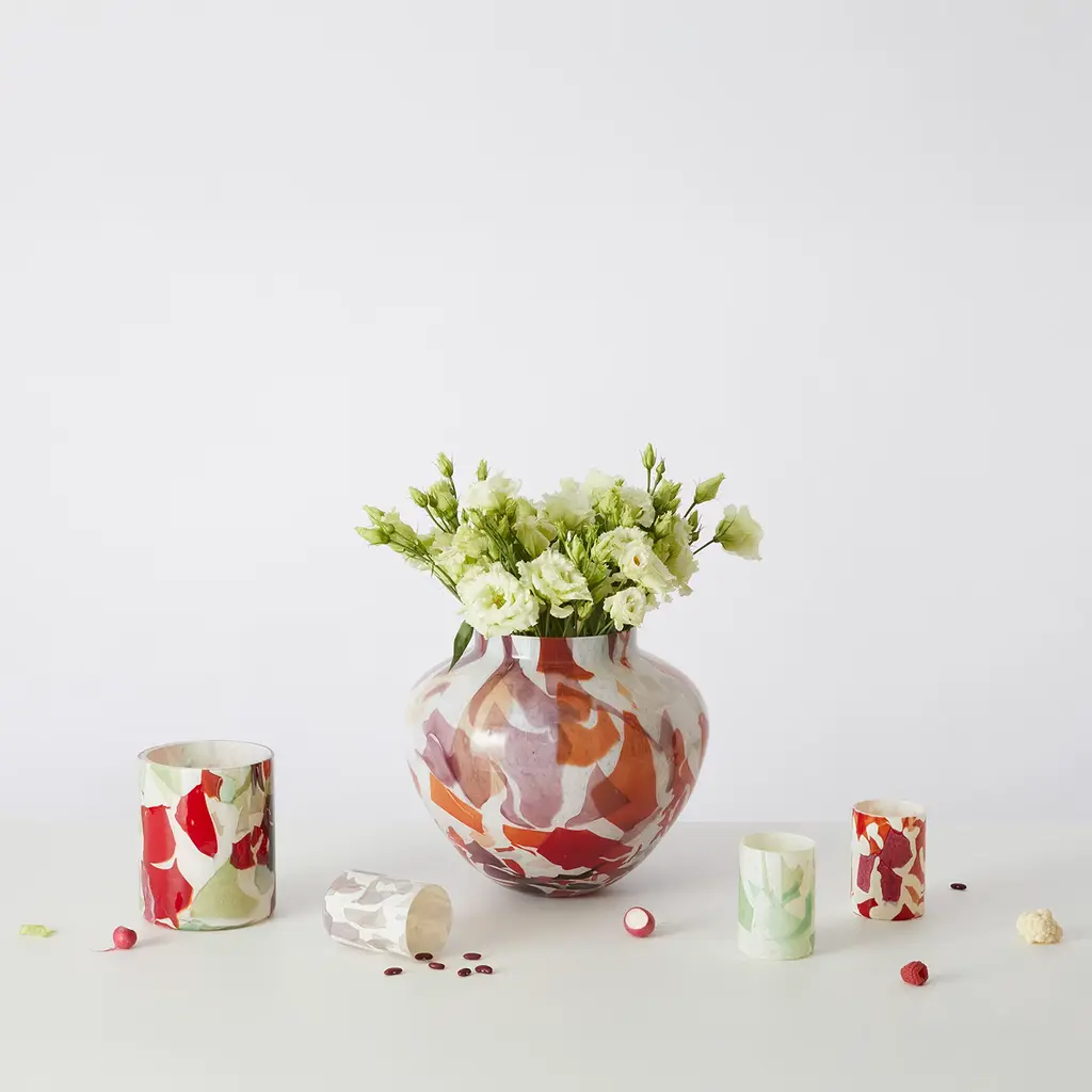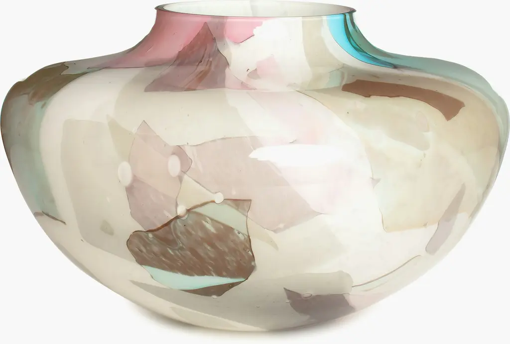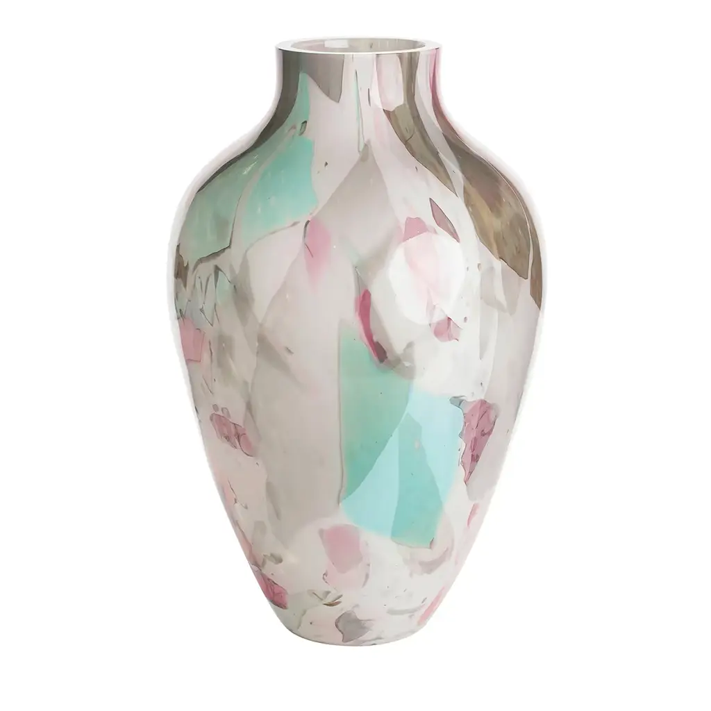 The Olla Autumn Large Vase, handcrafted by Murano artisans, celebrates the vibrant hues of autumn. Gray, red, and amethyst glass shards are artfully arranged on an ivory base, reflecting misty mornings, autumn foliage, and refined elegance. This Murano-blown masterpiece is a captivating centerpiece, infusing any space with sophistication and style. Each unique vase honors Murano's rich glassmaking heritage, showcasing exceptional craftsmanship passed down through generations.