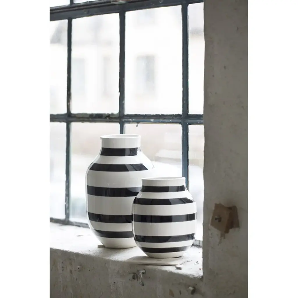 The Omaggio vases from Kähler are Ditte Reckweg’s and Jelena Schou Nordentoft’s homage to ceramic artist Svend Hammershøi, whose trademark was the use of horizontal and vertical decorative lines. Featuring a simple, contemporary design and coarse brush strokes in an array of colors, the vases present a unique and bold interpretation of his ceramic objects.