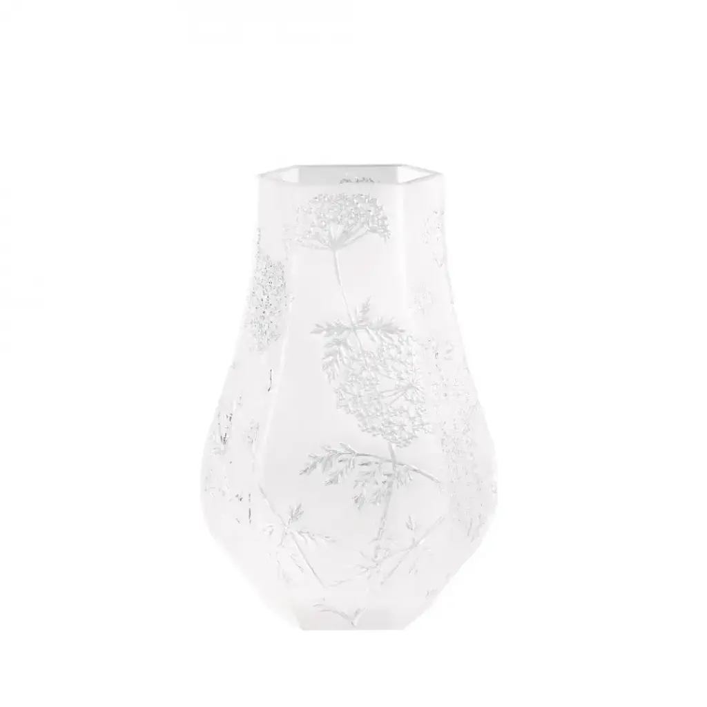 The Ombelles designs feature lightness, evanescence and modernity. The purity of crystal echoes the sober lines of the slender flowers. As if rocked by the wind, the transparent blossoming scintillates on the satin finished crystal. Trained as a jeweler at the Ecole des Arts Decoratifs in Paris in the late 1880's, Rene Lalique gained recognition as an independent designer for some of the era's great jewelry houses including Cartier and Boucheron. Eventually, he turned to glassmaking, and his techniques were a triumph for the Art Deco movement. Every piece of Lalique is finely detailed and produced by hand in Alsace, France.