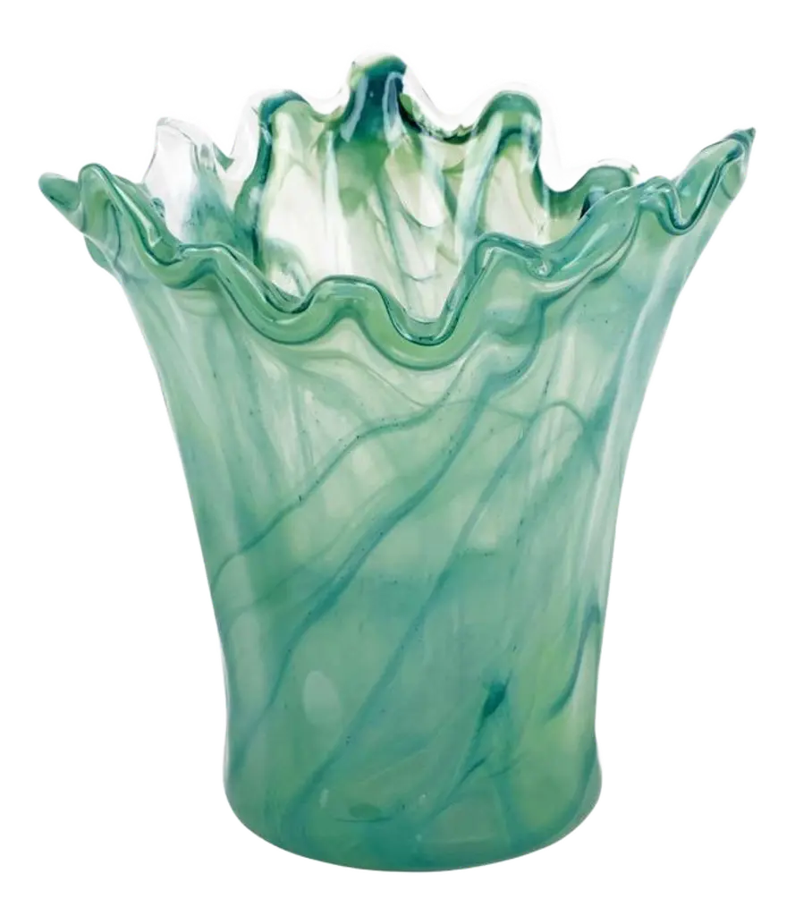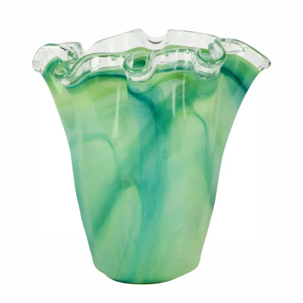 Reminiscent of the waves crashing on the island of Capri, the organic shape of the Onda Glass Cobalt Ruffled Vase mimics the beauty of Italy’s coastline and its deep blue water. Since 1983, Vietri has specialized exclusively in Italian handcrafted ceramics, stainless and pewter flatware, mouth blown glassware, lamps, urns and planters. Families of artisans with 3 or 4 generations of history create these special pieces using centuries-old techniques. The subtle color from a paintbrush and the curving stroke of the artist's hand are never repeated in quite the same way, making each piece truly unique.