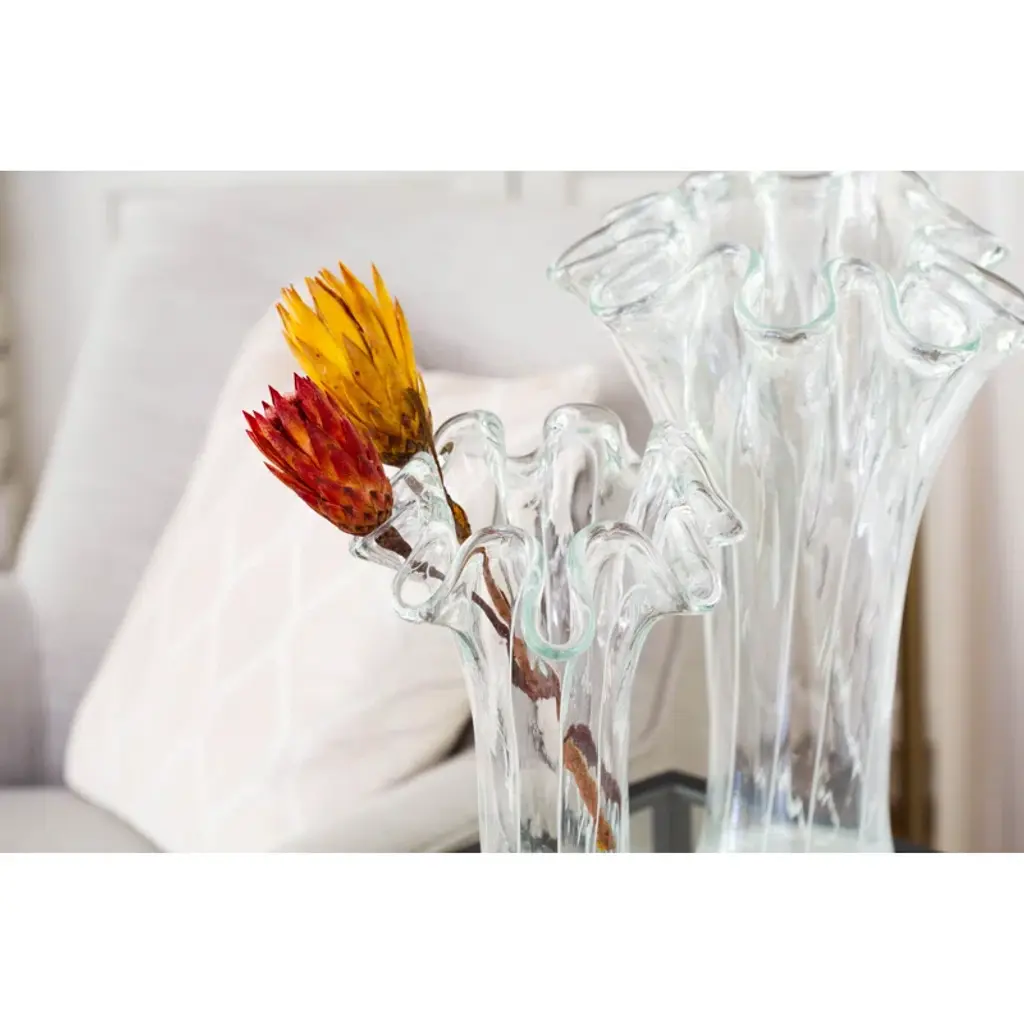 Mouthblown in Italy, the Onda Glass White Vase makes a sophisticated centerpiece on its own or is filled with flowers freshly picked from your garden, or given by someone special.