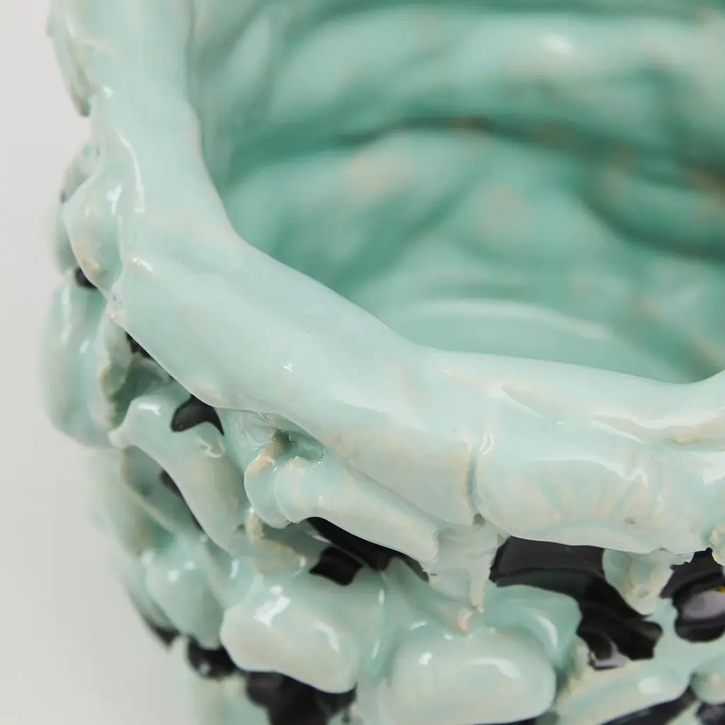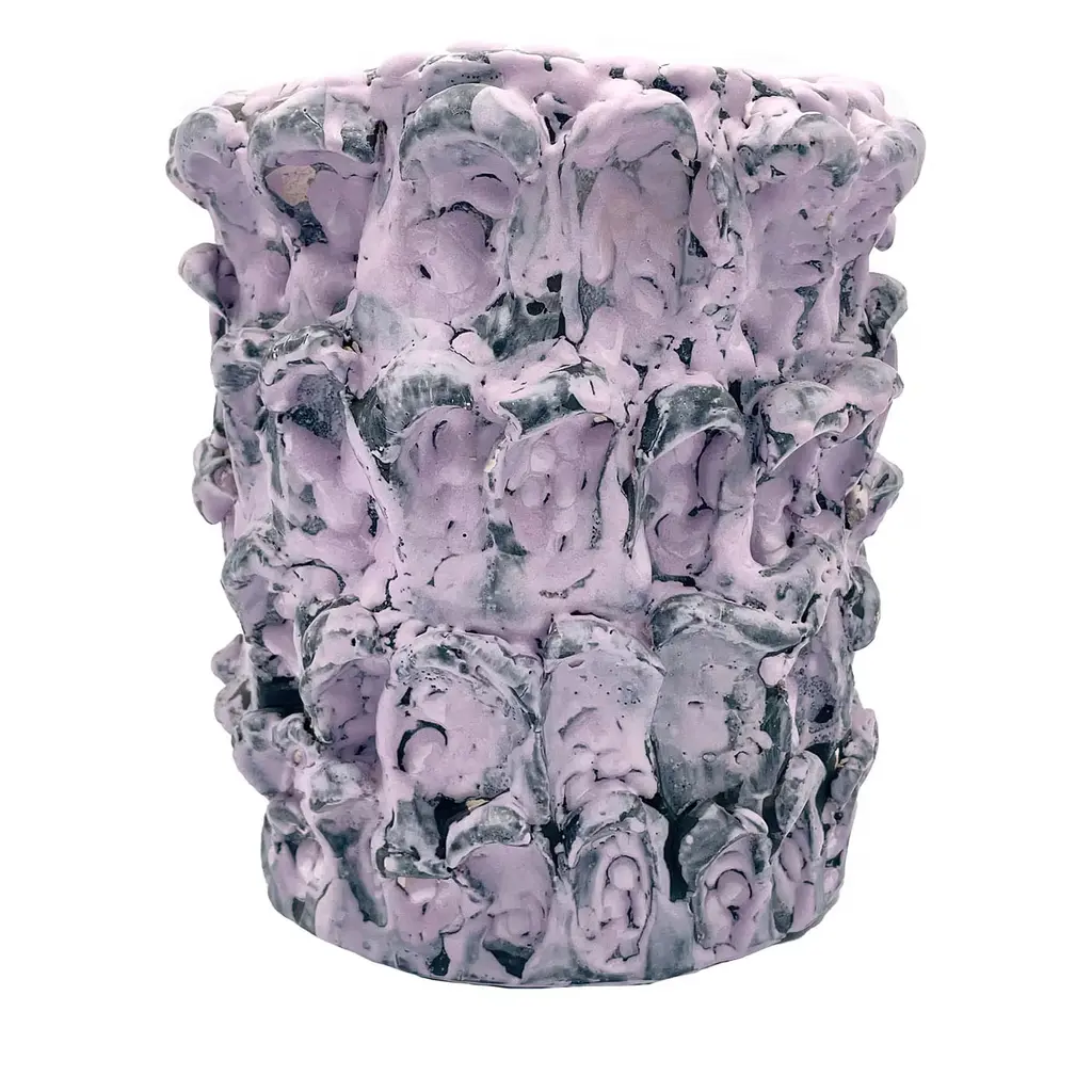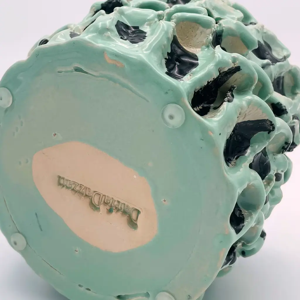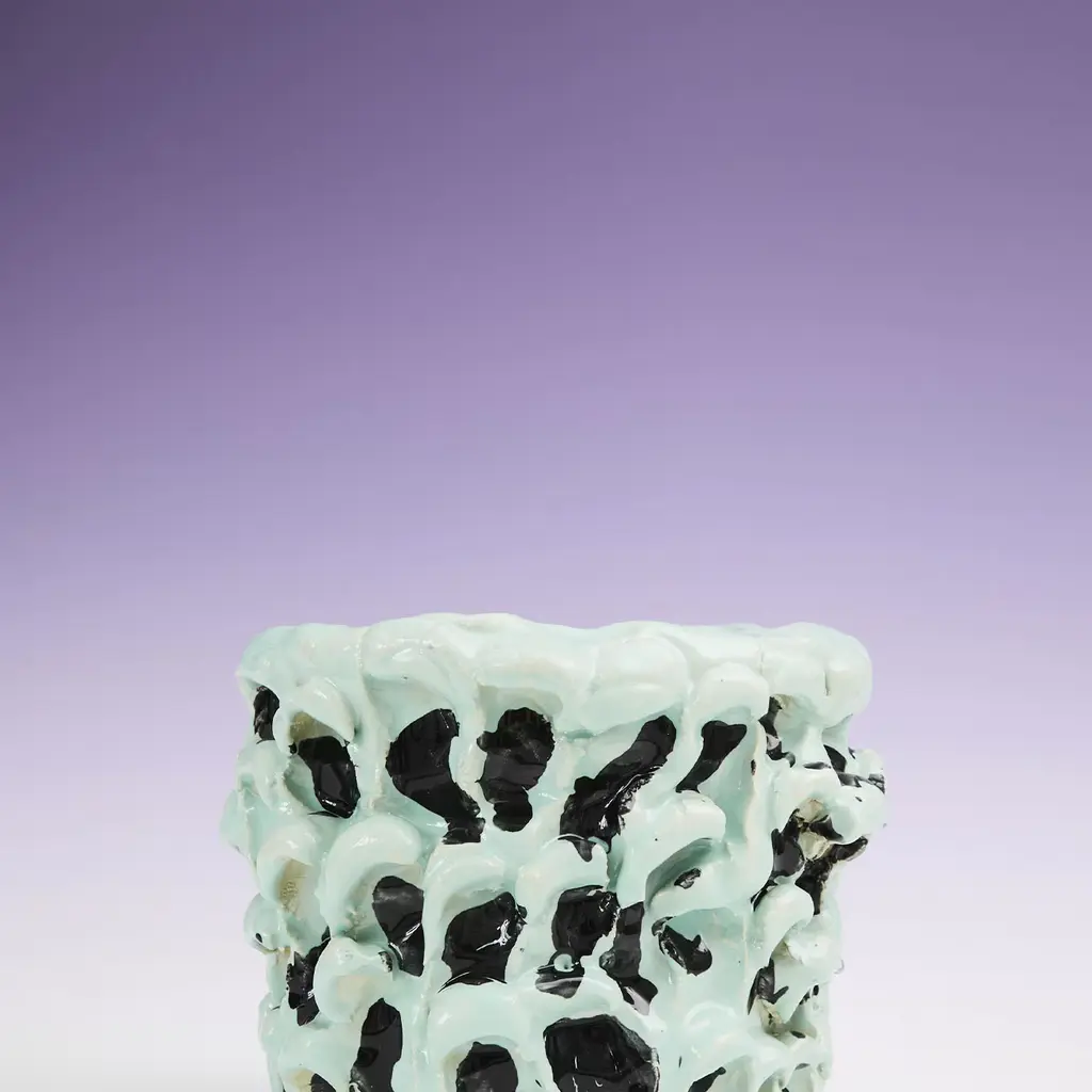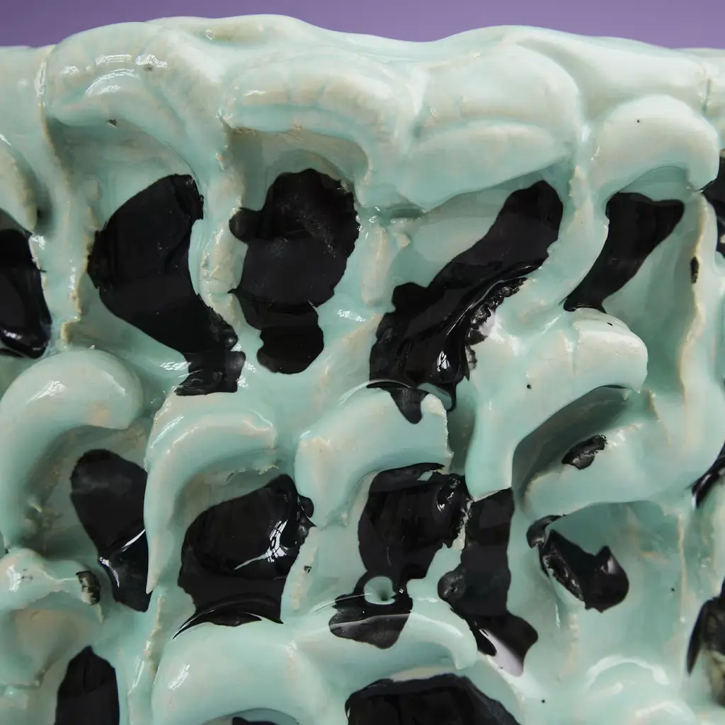 Daria Dazzan develops her pieces on the border between design, pottery and sculpture. Her unique, handmade pieces are a combination of the artistic background of the artist: high-end fashion textile. The Onda series is an embroidery on ceramic bodies, made with a gesture of the hand thumb. She creates an aesthetics of colour-saturated, shiny pieces. The functional artistic pieces, entirely Made in Milano, exist in a limited numbered series of 20 pieces.