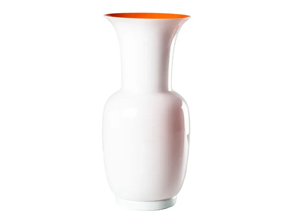 Opalino is a vase obtained by overlapping the milk with other glasses, the opal glass is blown and worked by hand. The Opalino vase is all about sophisticated and unique colors, thanks to the use of the traditional Opalino technique. This method was first introduced in the 15th century to make glass resembling porcelain – milk glass or Lattimo – and is now revisited by VENINI. Designed from the creative mind of Paolo Venini in 1932, the Opalino vase conveys pure gracefulness in its shape and colours.Elegance has no excess, no frills, no illusions. Elegance is purity, it is essential and perfect lines. It is sophisticated color able to get noticed for delicacy. Elegance is a handmade blown glass vase, that never reveals her age and has been in exhibitions and publications worldwide for over eighty years. Elegance has a synonym - Opalino.Colors:Code 706.08RedCod. 706.22 / 706.24 / 706.38RedAmber yellowMilk-white / OrangeOrangeIndigoGreen appleHorizonAcquamarineGreyMilk-whiteRio Green / Rio GreenPowder pink / Powder pink