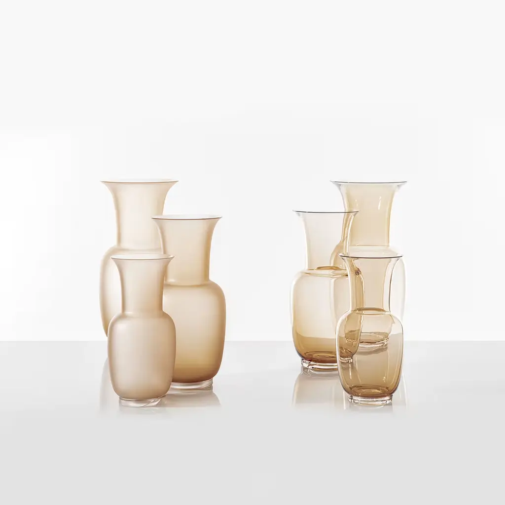 A perfect transparency warmed up by a delicate peach tone characterizes this one-of-a-kind vase, iconic design that has been appreciated worldwide for more than eighty years. Carefully mouth-blown from prized Murano glass, it brims with effortless elegance thanks to the combination of convex and concave profiles tracing its harmonious silhouette. Multiple variants are available in the Artemest catalog.