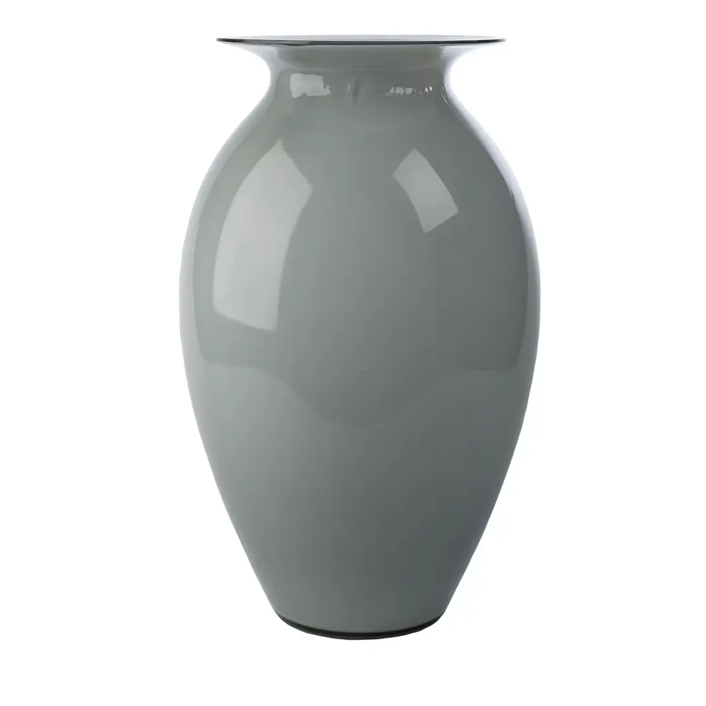 A captivating smaller version of the iconic Opalino vase, originally designed by Venini in 1932. Crafted in the historic "lattimo" technique, here featured with two layers of mouth-blown opaline black glass, this refined objet d'art flaunts a classic curved silhouette with a long neck and flared rim. A remarkable display piece for a chic modern interior, which may also embellish a minimal floral arrangement.