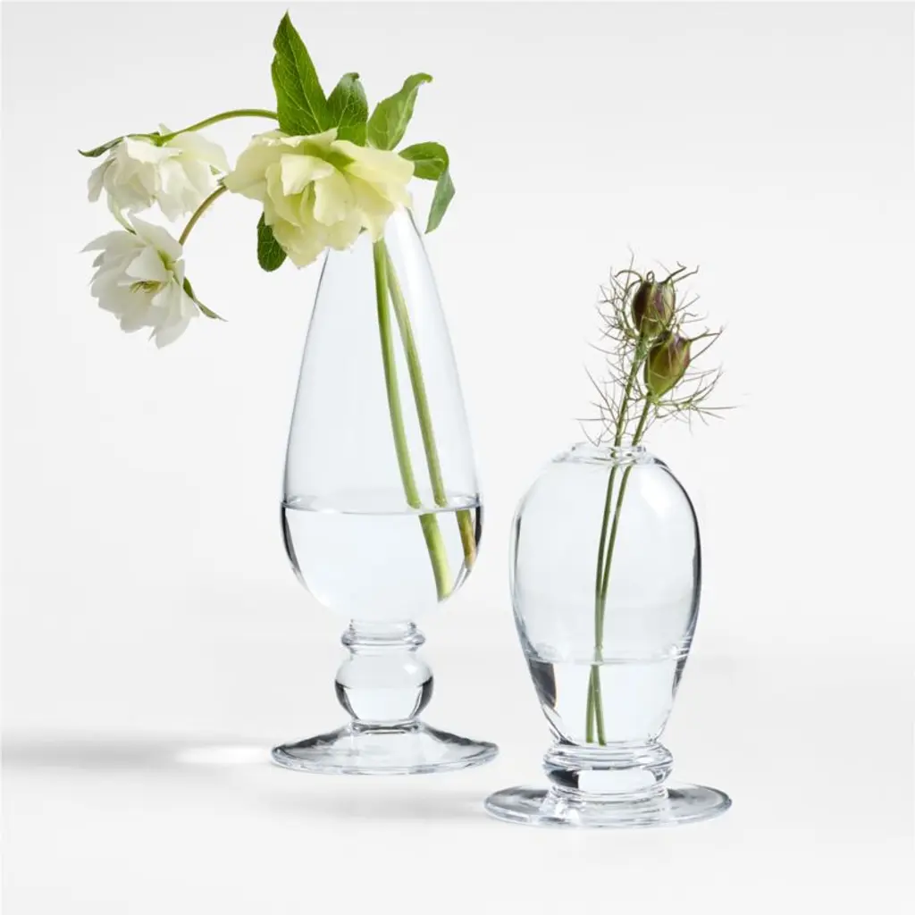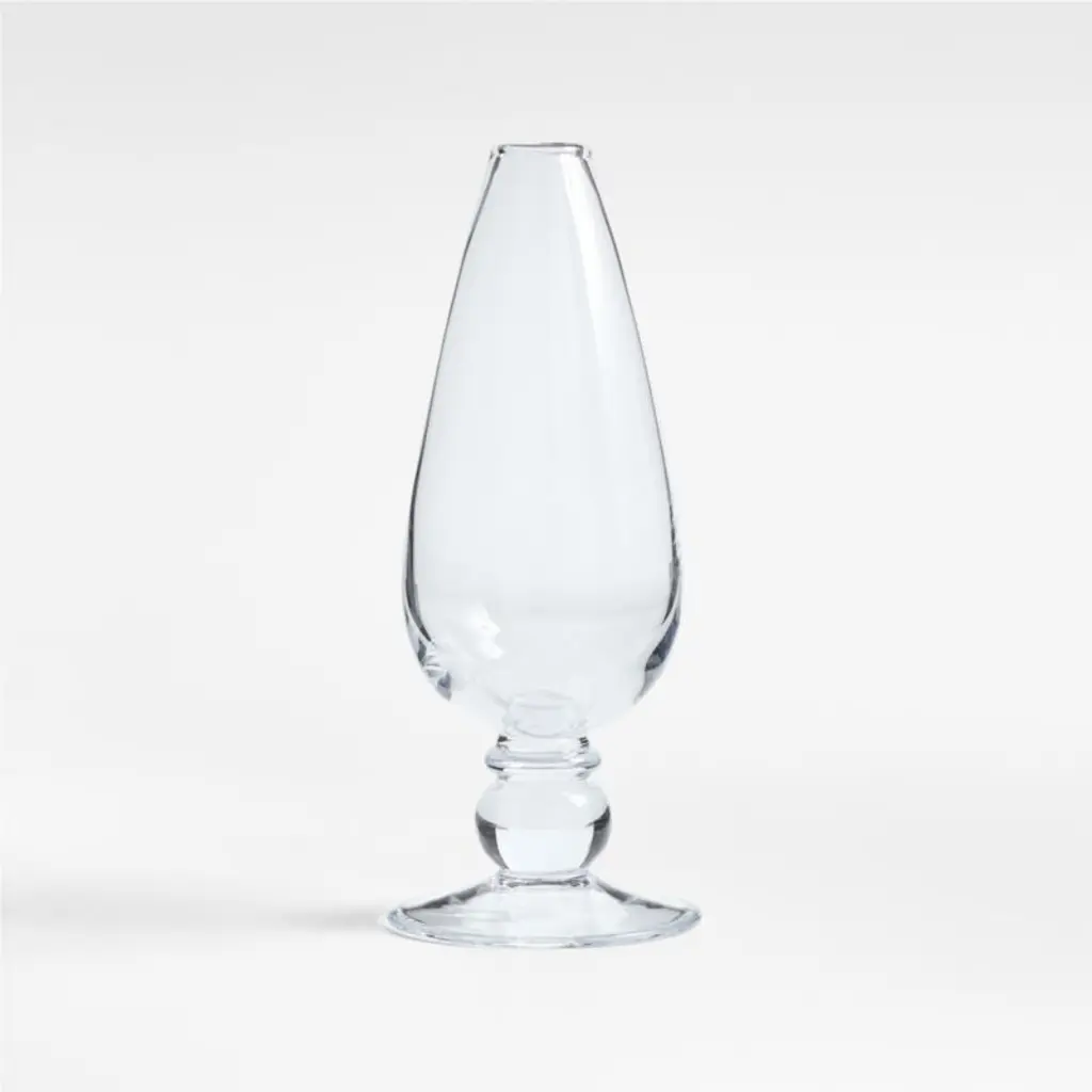 Inspired by our bestselling Ophelia ceramic collection, this glass vase exhibits the same artisanship and streamlined update on classic vessels. The curves of this bud vase taper gracefully to support a stem or two, perched upon a ball base and a wide foot. Hand-blown by highly skilled craftspeople, the clear glass is gorgeous and substantial. We love to scatter a variety of Ophelia glass vasesfilled with fresh, dried or faux branchesaround a space for a cohesive effect.