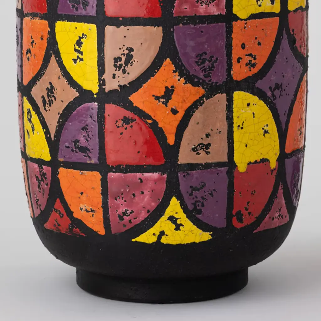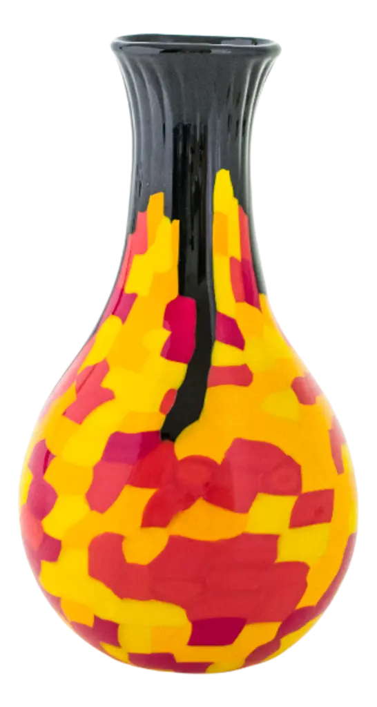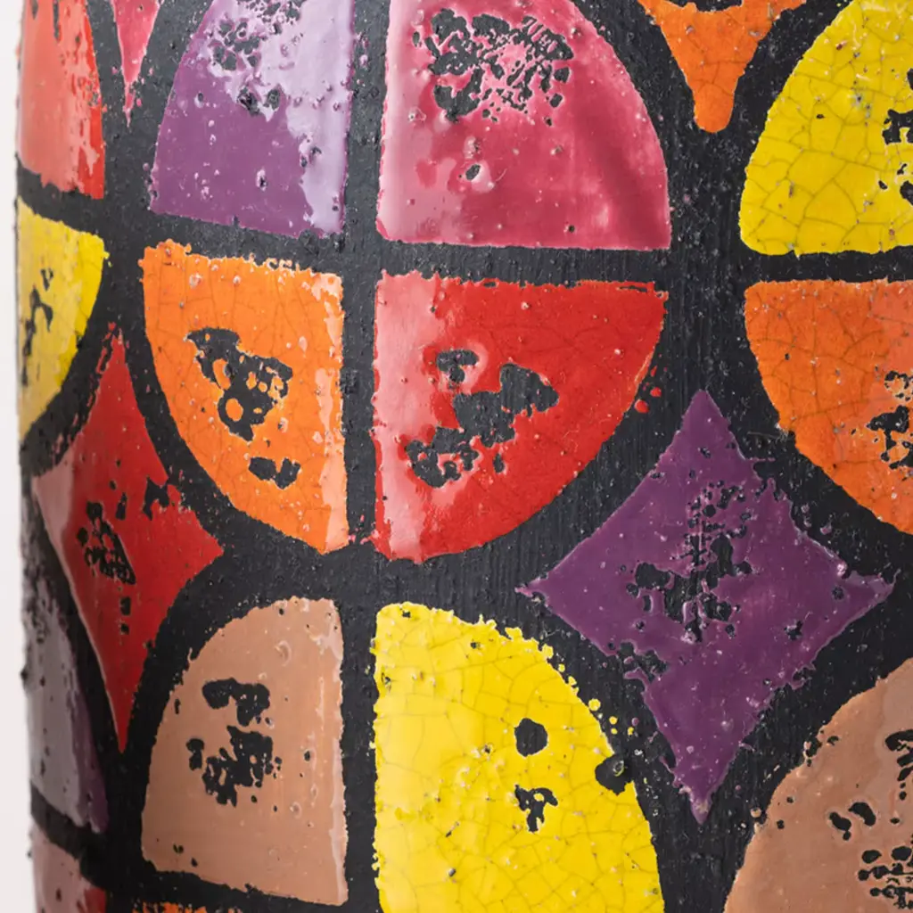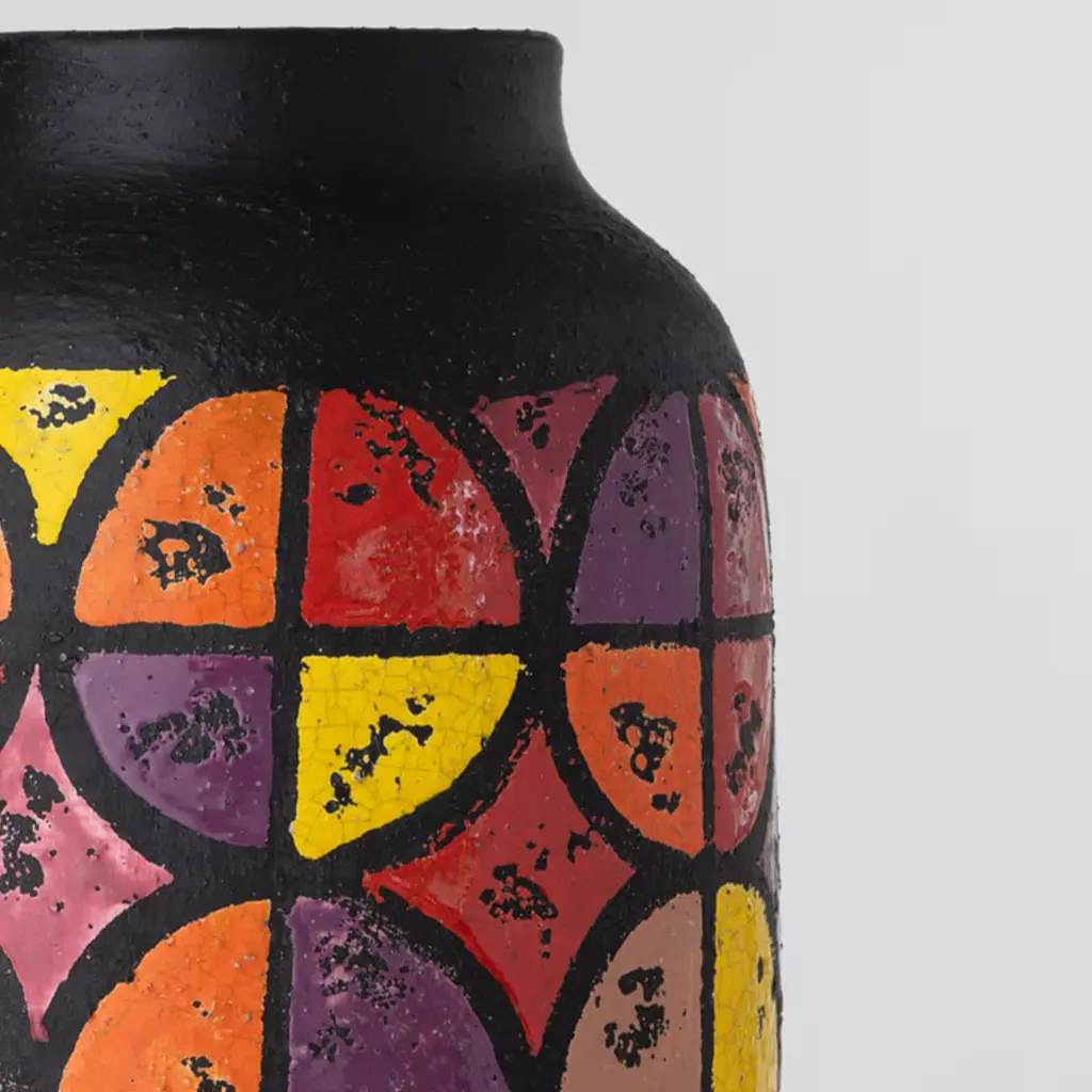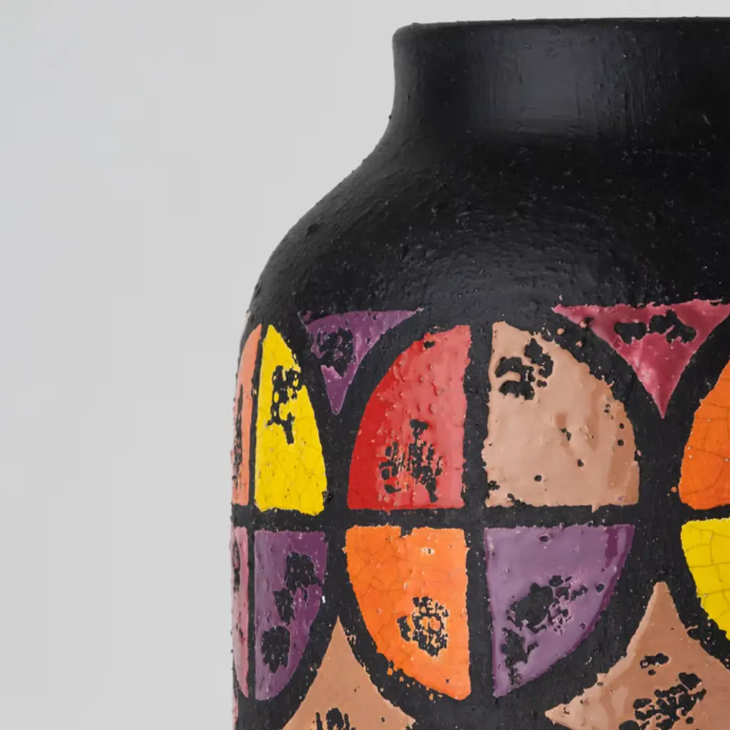A reinterpretation of an original work from the Ceramiche Bagni Archive, this vase showcases a bold and colorful design inspired by American Pop culture from the 1960s and '70s. A sleek, matte-black colored cylindrical silhouette entirely handcrafted of ceramic following traditional methods, it will make a refined and stately addition in a modern interior.