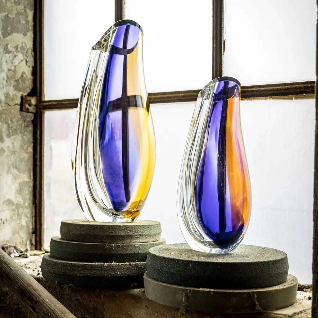 Inspired by his close relationship with nature, the Orchid Vase from Kosta Boda is a magnificent, sculptural design. This stunning art object is mouth-blown by hand using a free-hand technique. The vibrant, multi-colored glass is expertly shaped into a distinctively organic form, evoking the beauty of a blooming orchid. A fusion of artistic vision and master craftsmanship, each unique vase is a sophisticated and timeless collector's piece. Highlights: