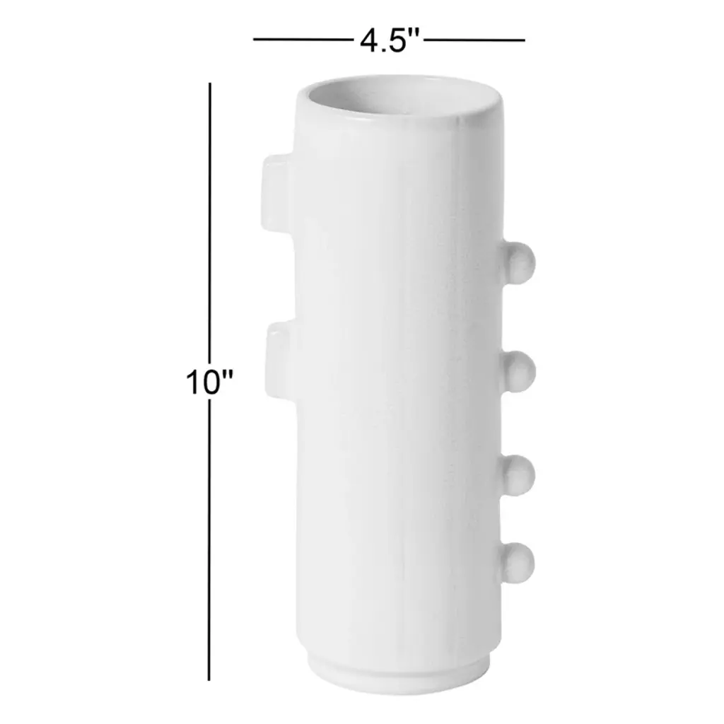 Cylindrical vase with square and circular handles. Eye-catching and modern, this piece is a work of art.